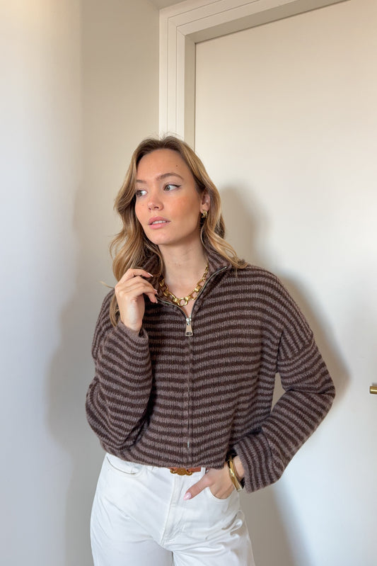 PULL LEANDRE VERT/MARRON