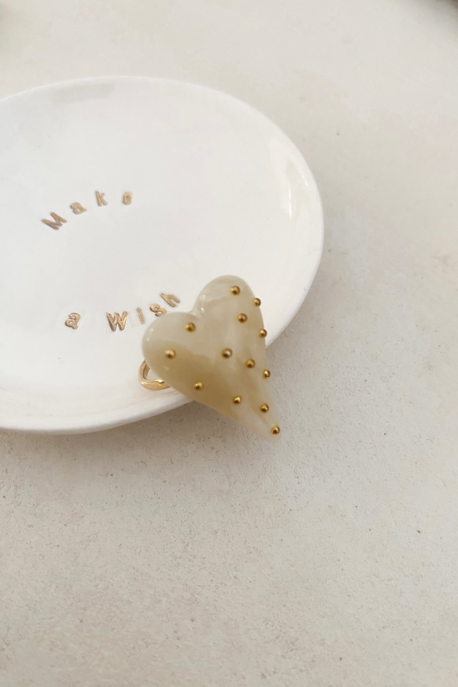 Bague réglable en acier inoxydable – cœur beige et détails dorés