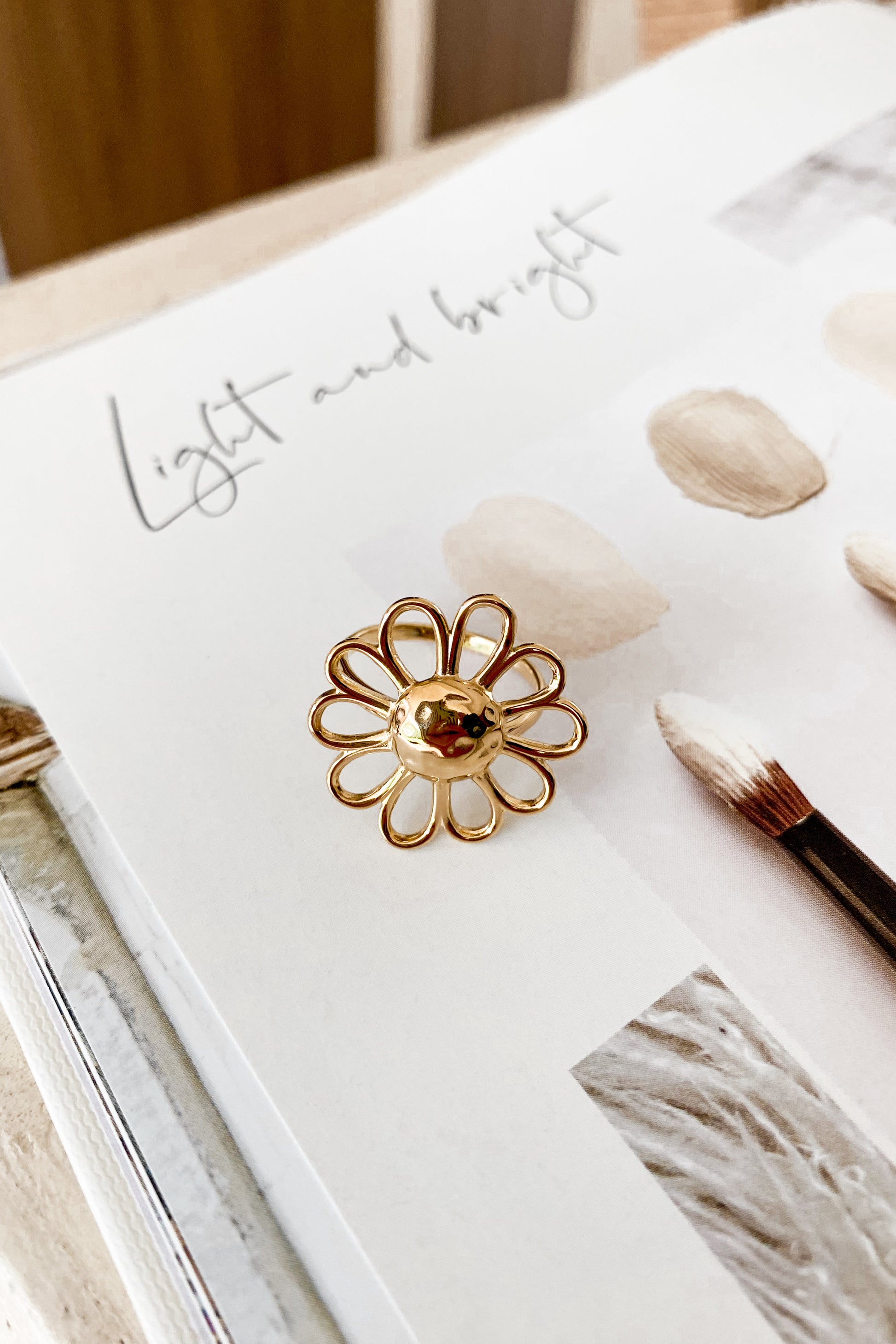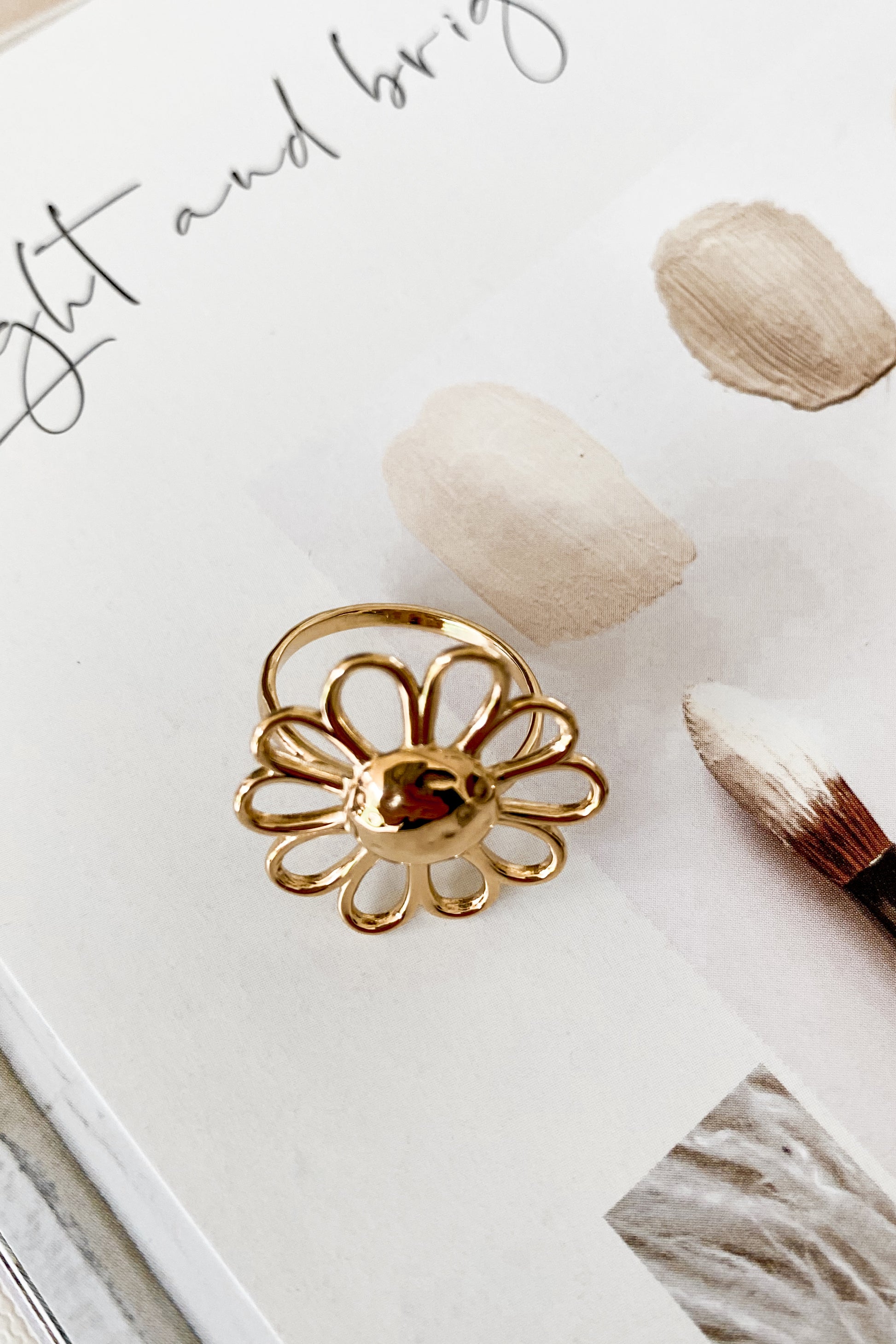 Bague dorée en acier inoxydable, élégante et intemporelle en forme de fleur.