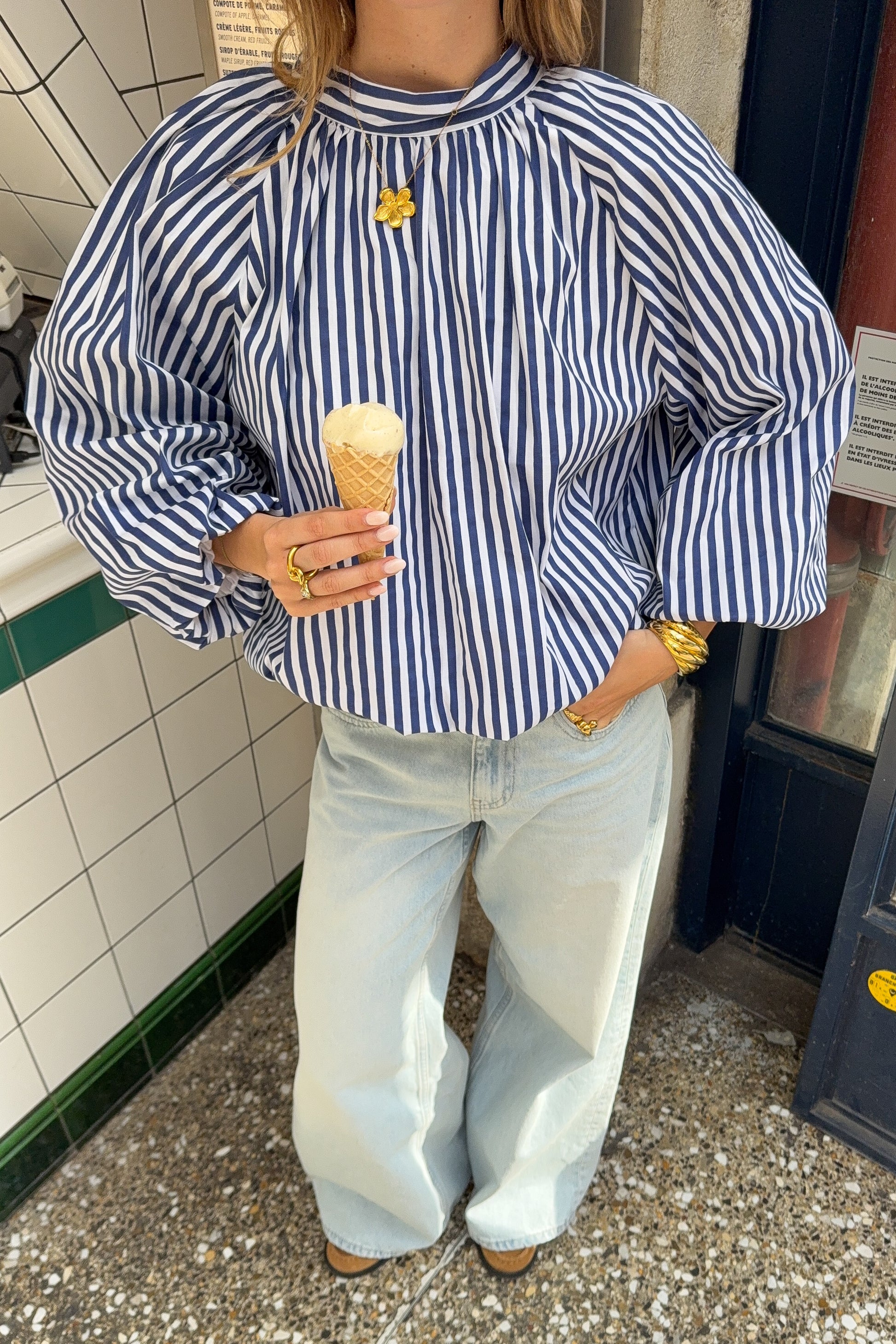 Blouse large en coton – Manches ballons et dos ouvert