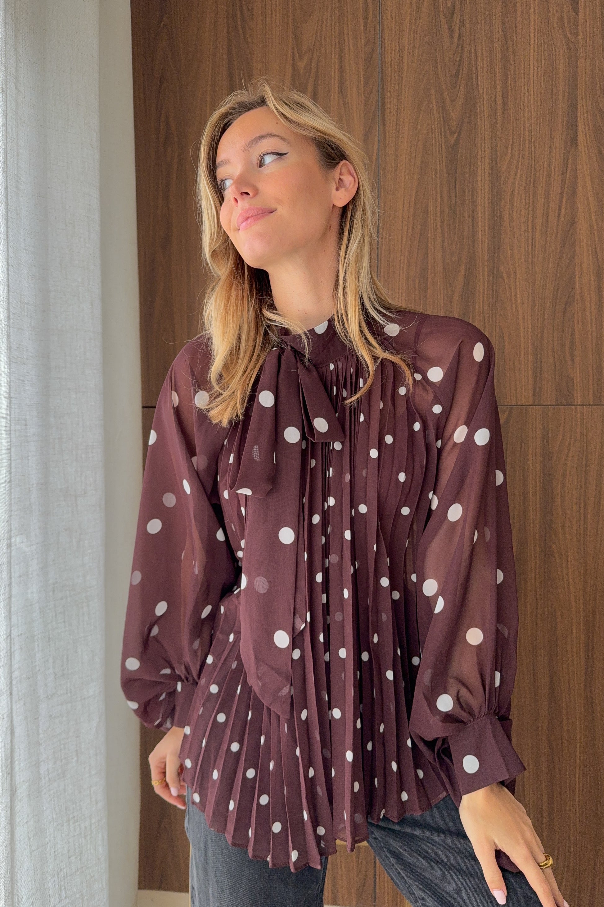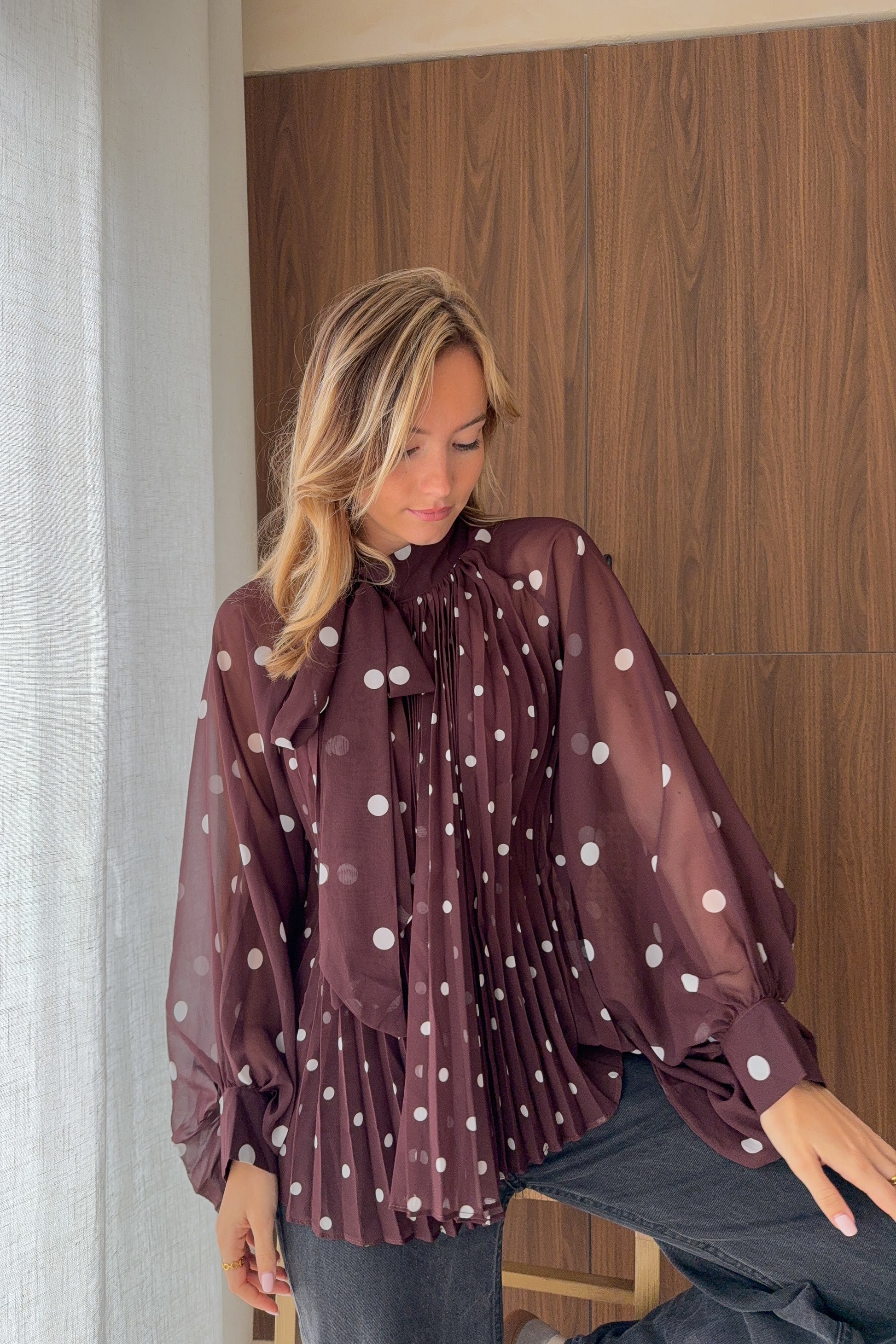 Blouse à pois choco – volumes sublimes et détails raffinés