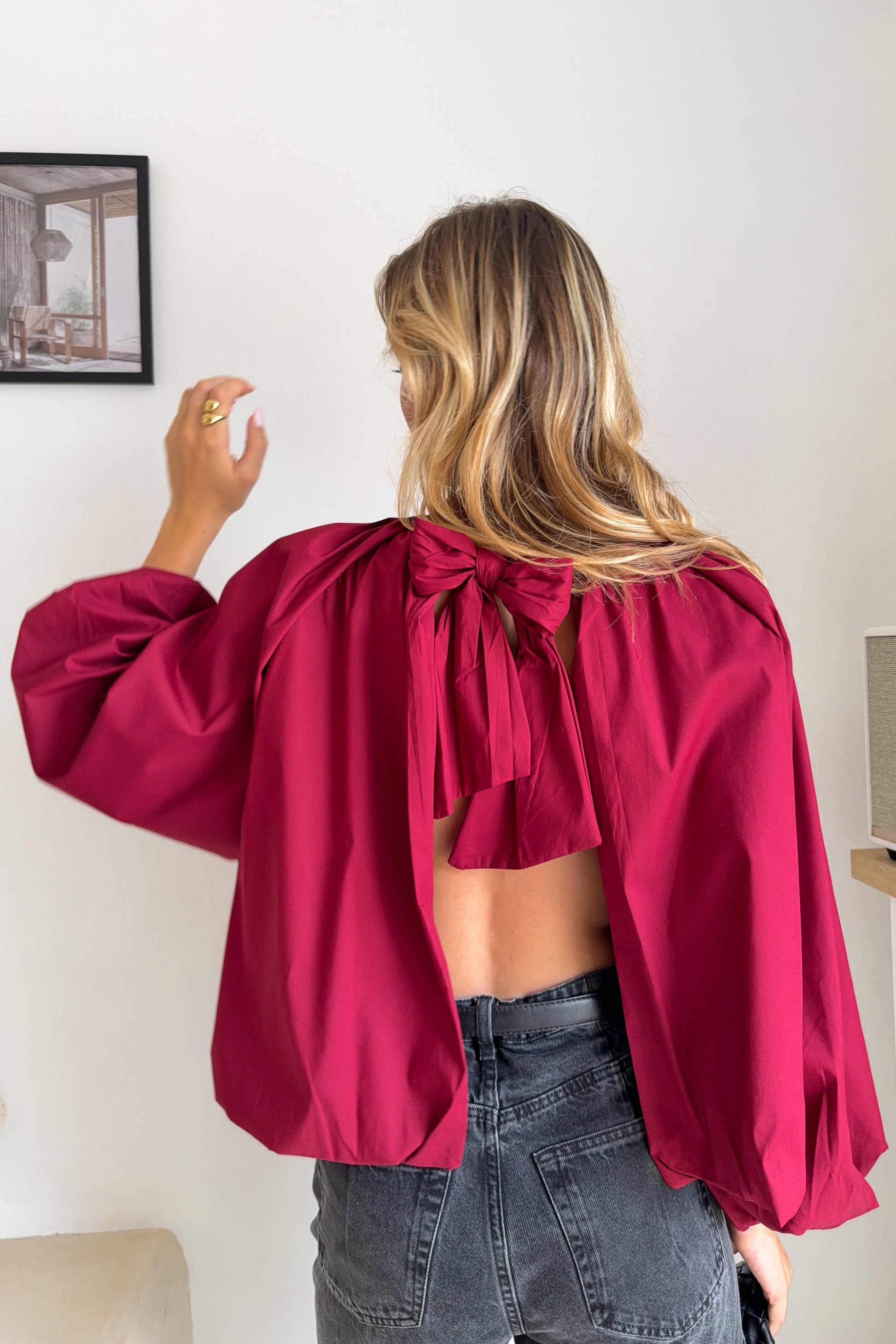 Cette blouse large en 95% coton et 5% nylon séduit par son volume généreux et sa belle tenue. Entièrement doublée, elle assure un tombé impeccable. Les manches ballons ajoutent une touche structurée, tandis que le dos ouvert sublimé par un nœud au niveau du cou apporte une élégance subtile et sophistiquée.