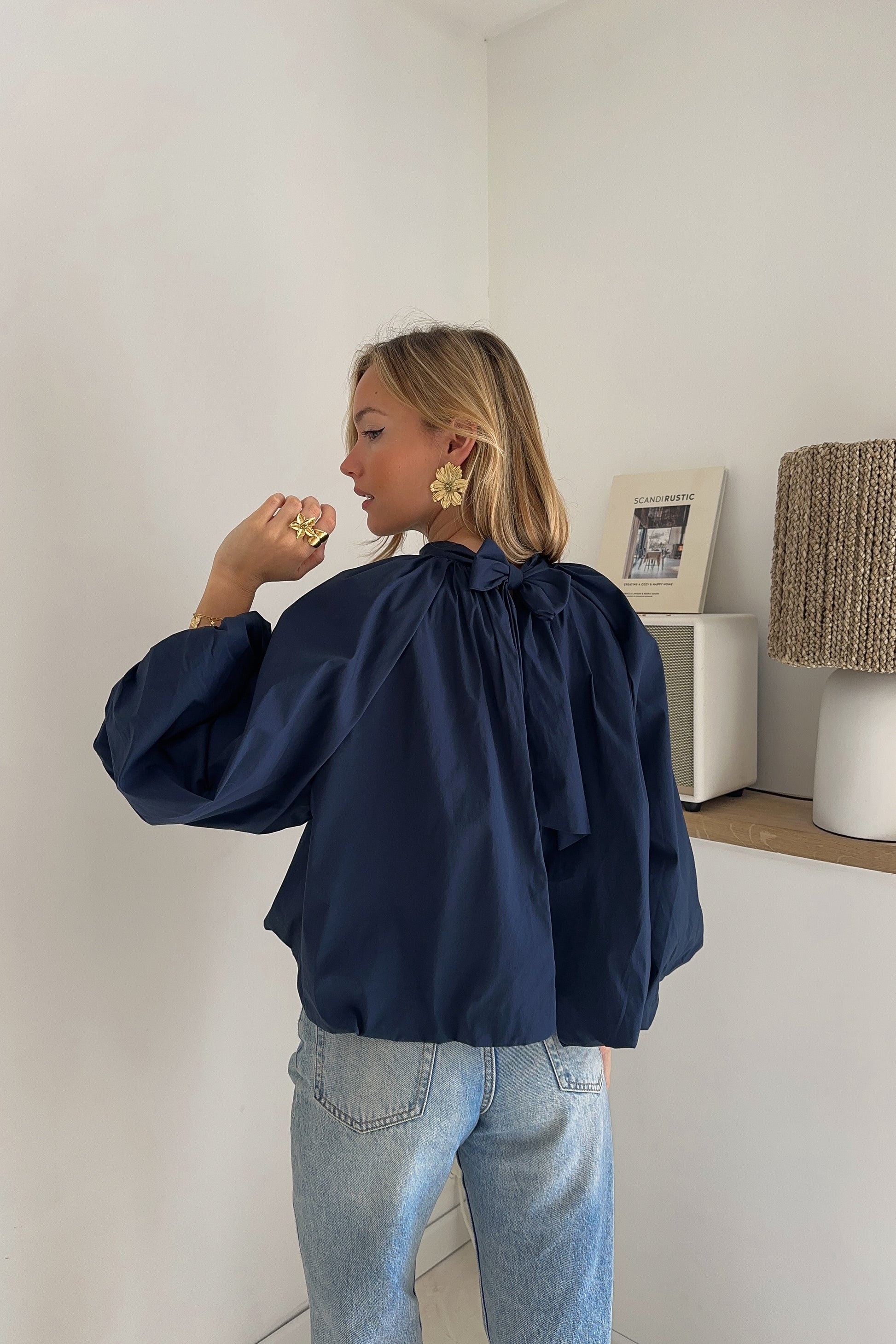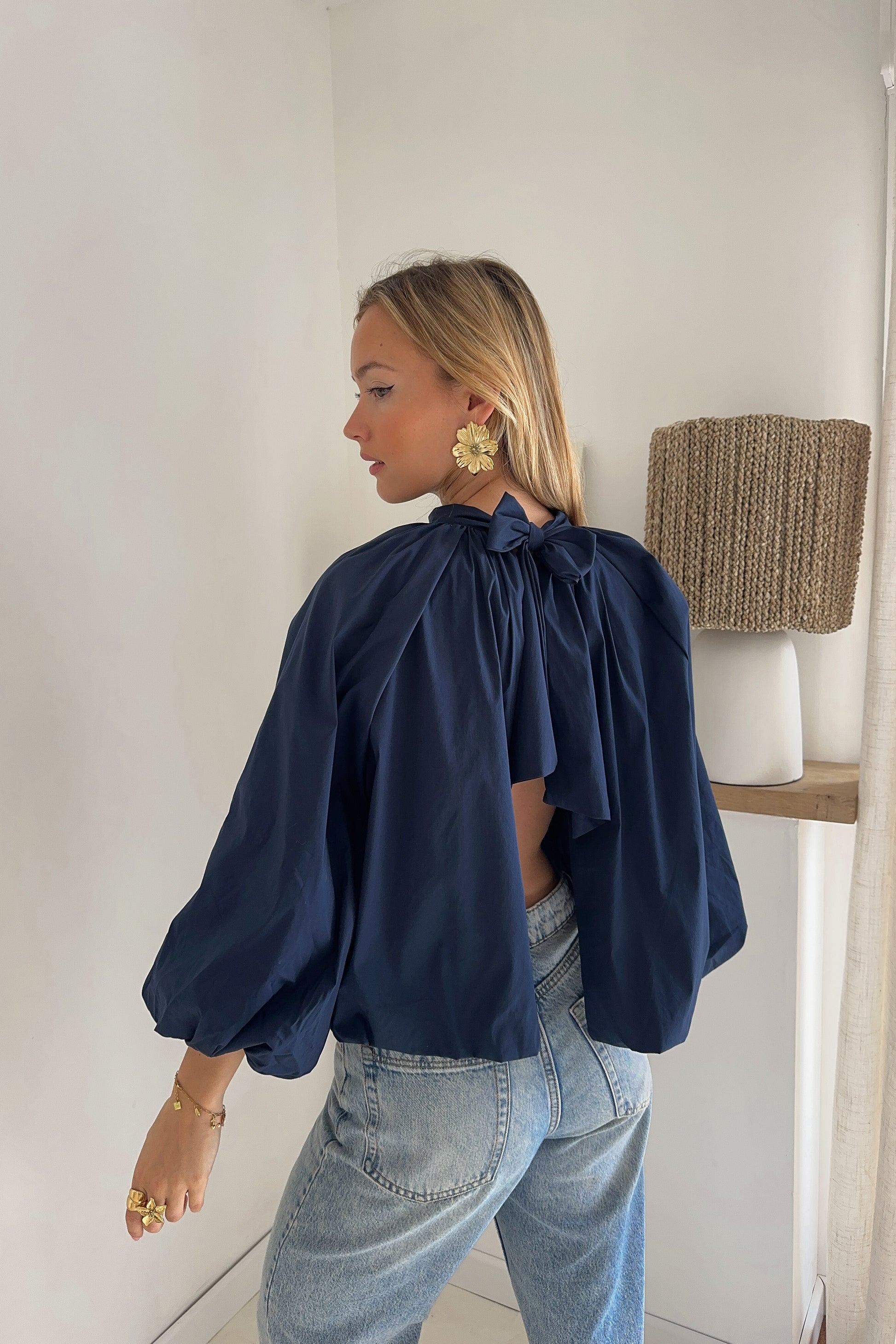 Blouse large en coton – Manches ballons et dos ouvert
