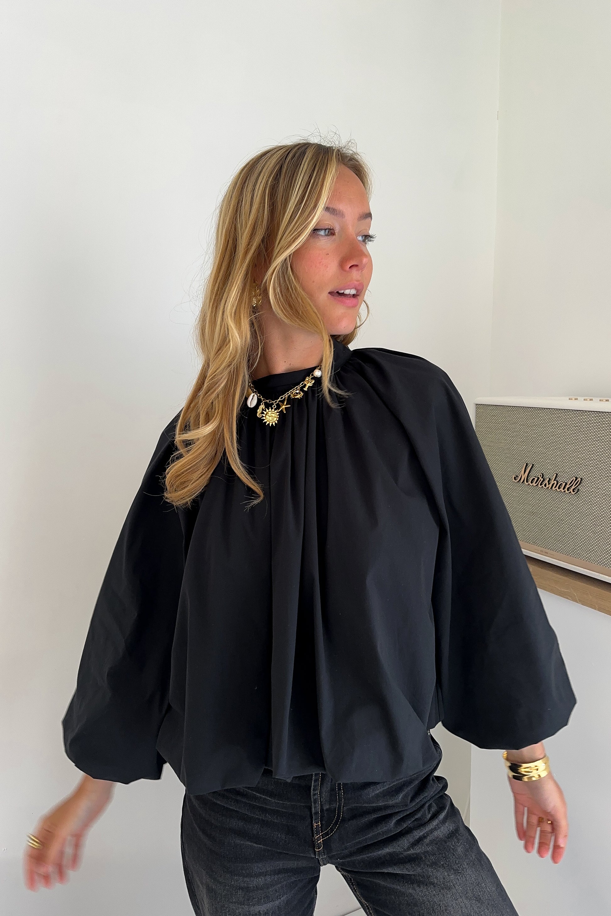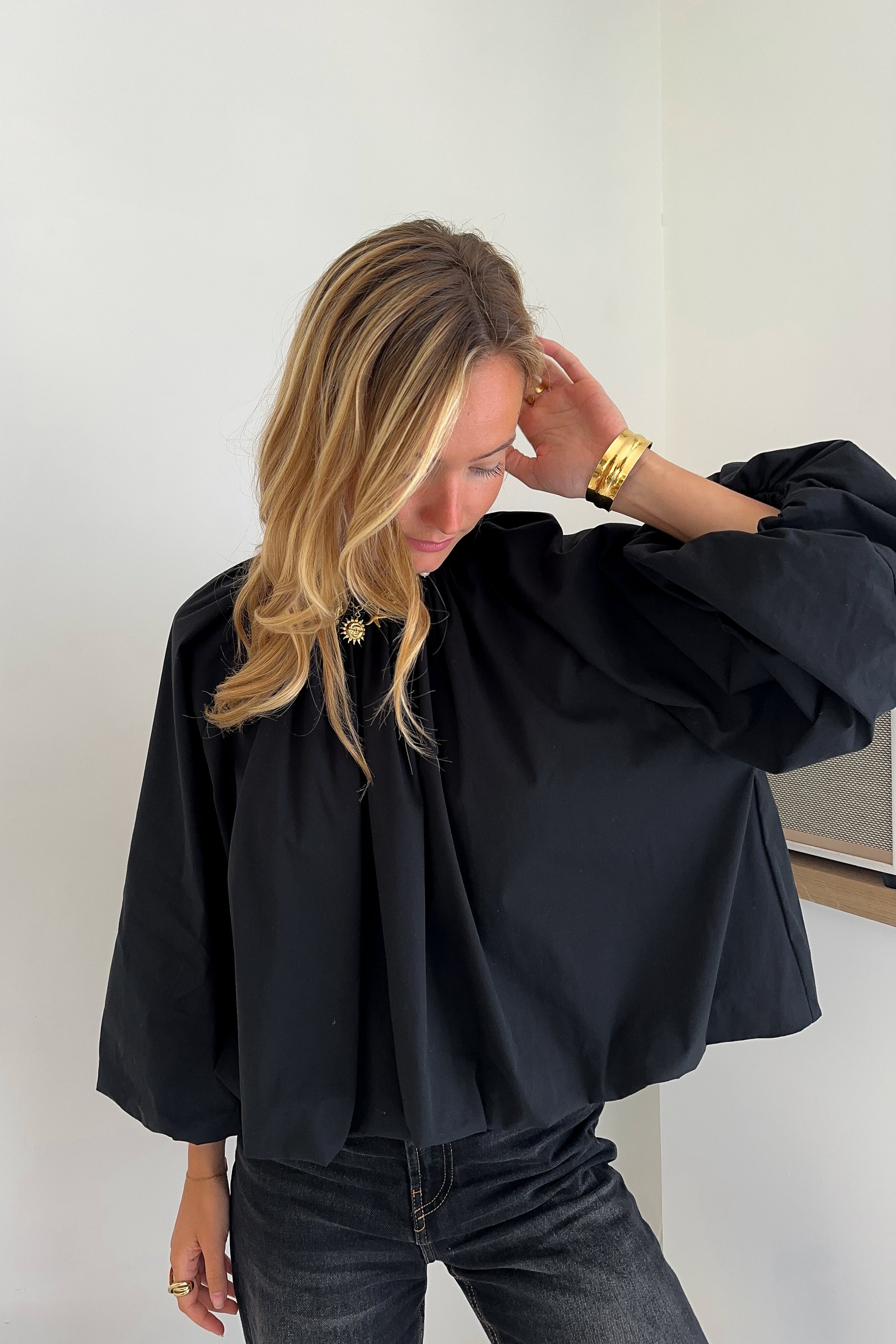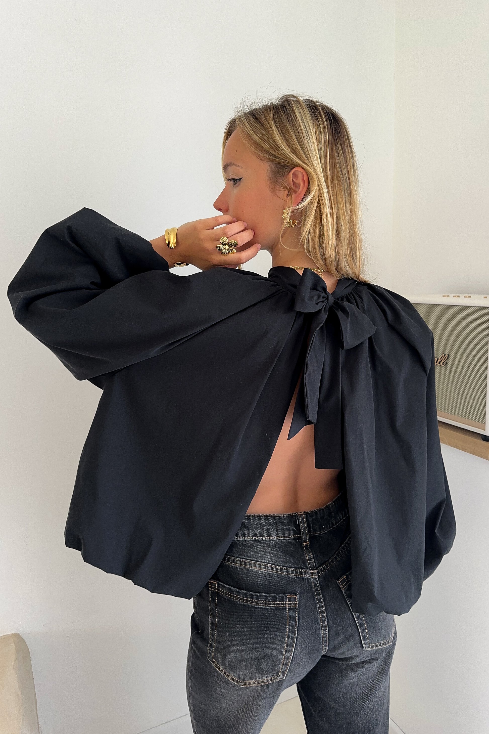 Blouse large en coton – Manches ballons et dos ouvert