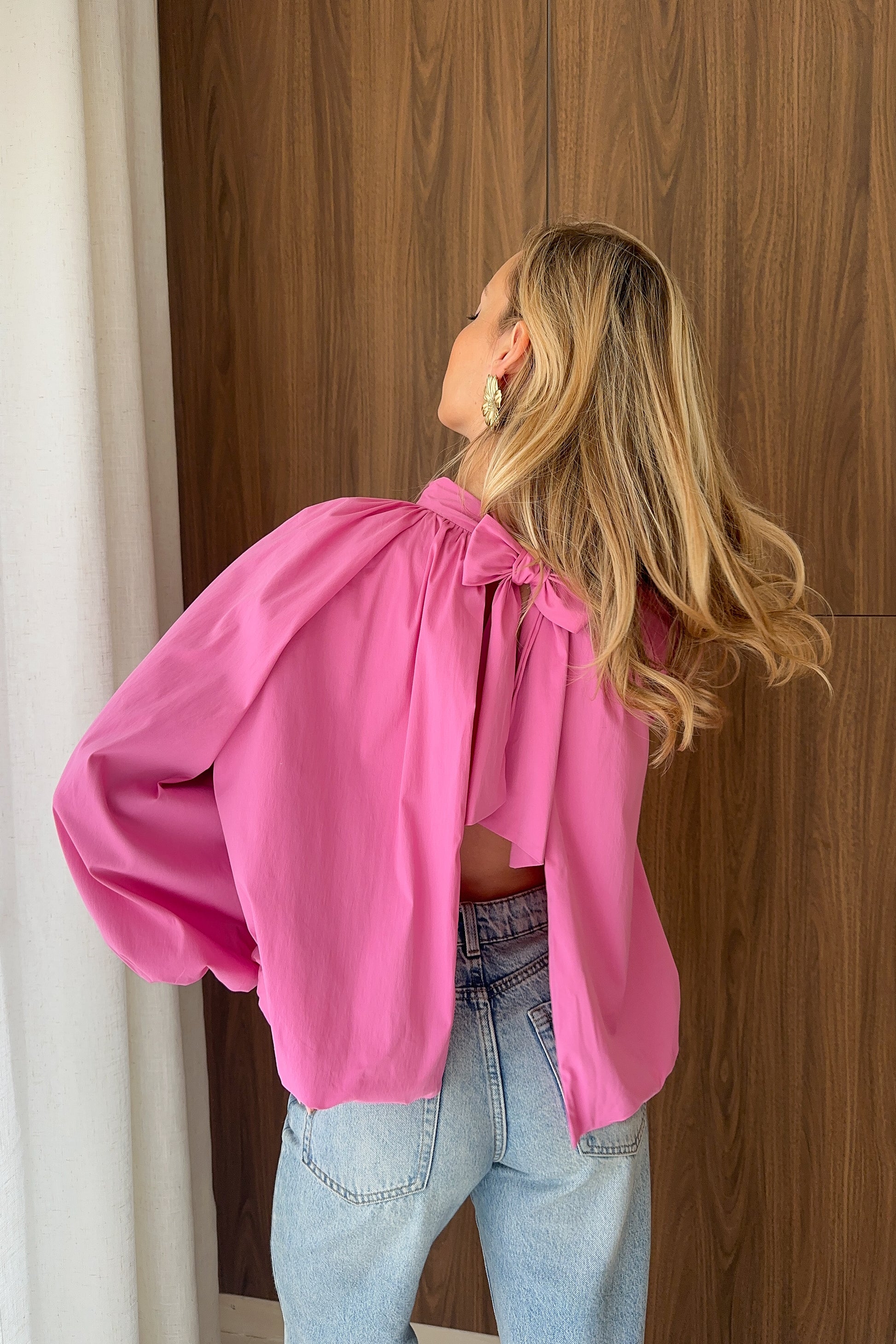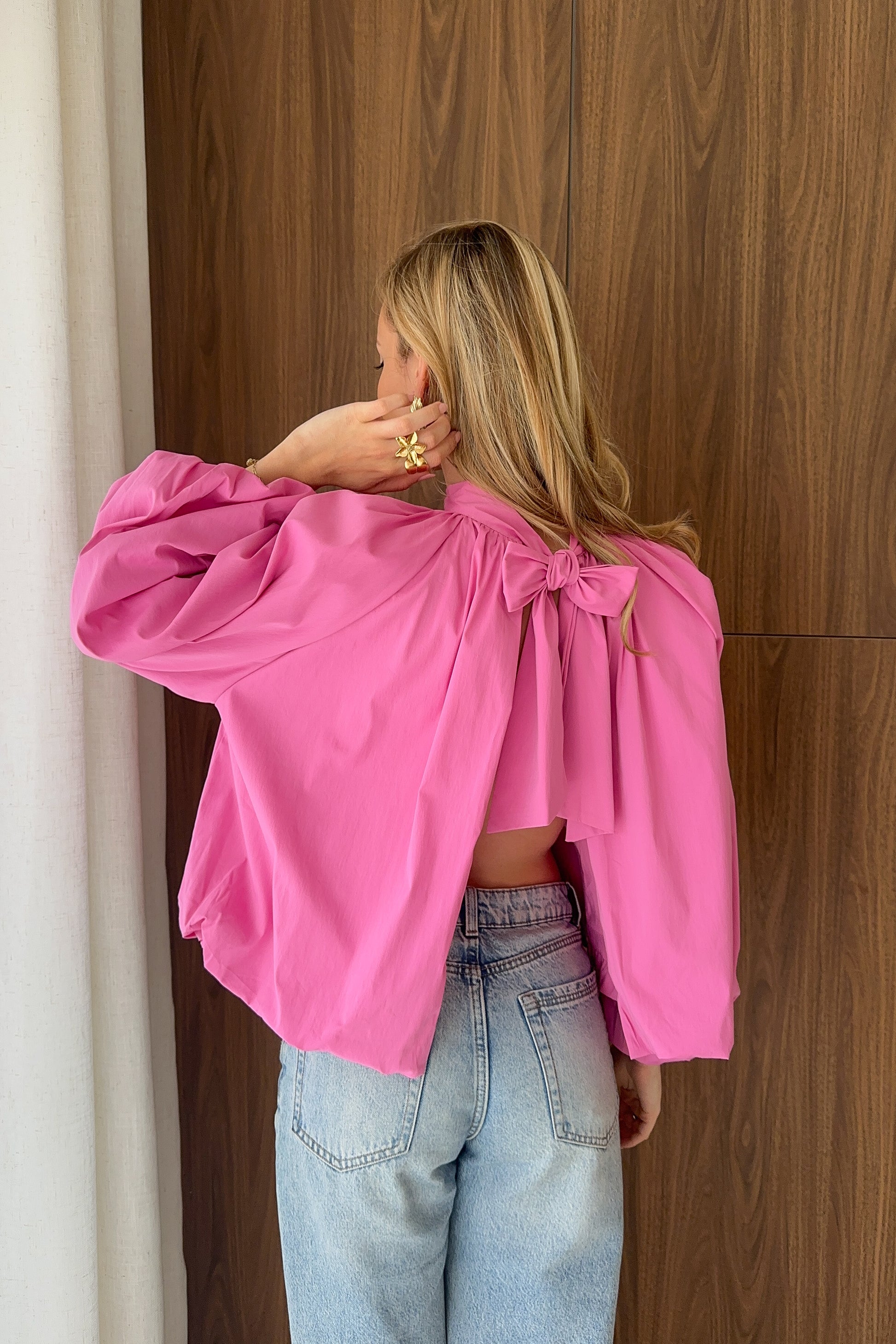 Blouse large en coton – Manches ballons et dos ouvert