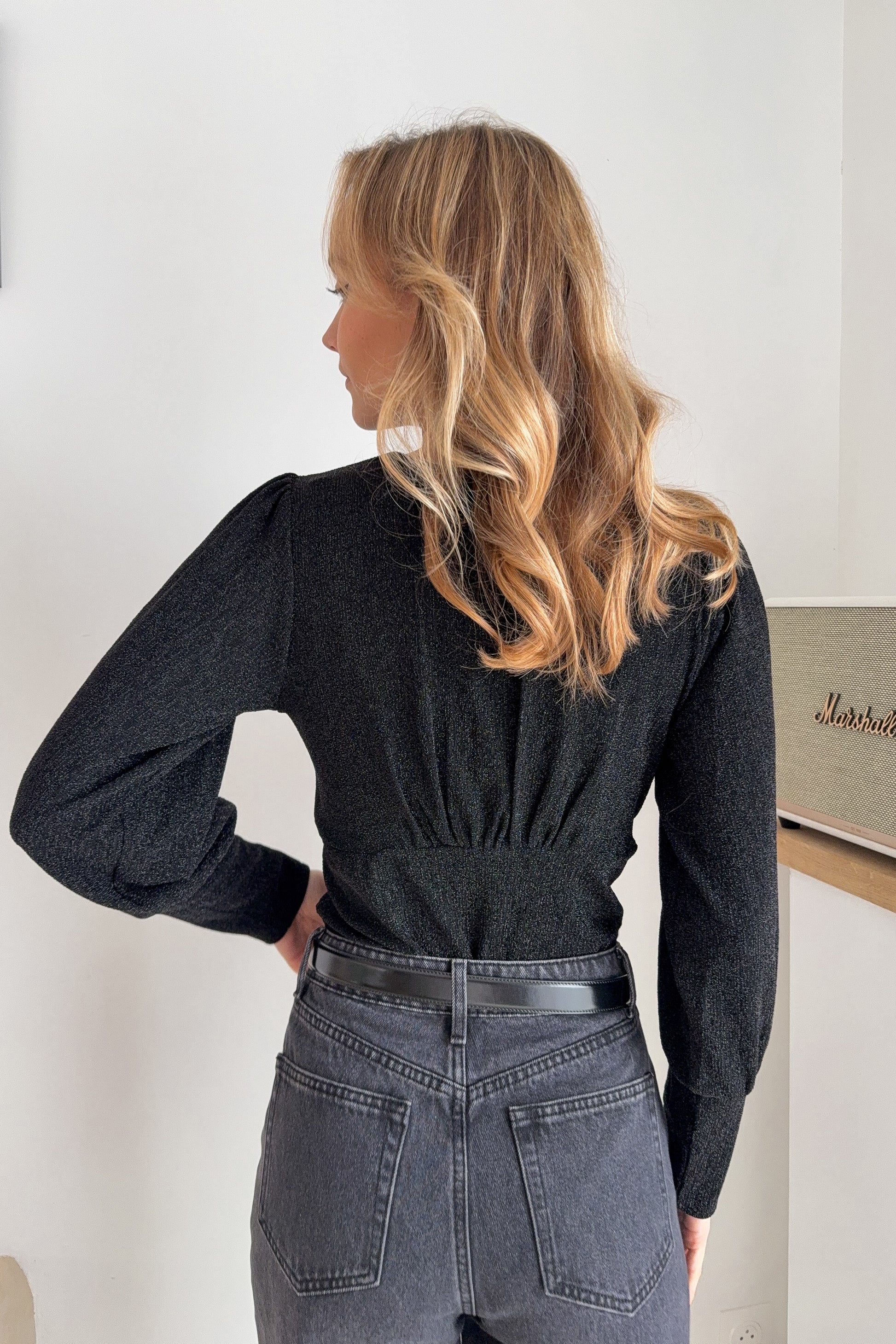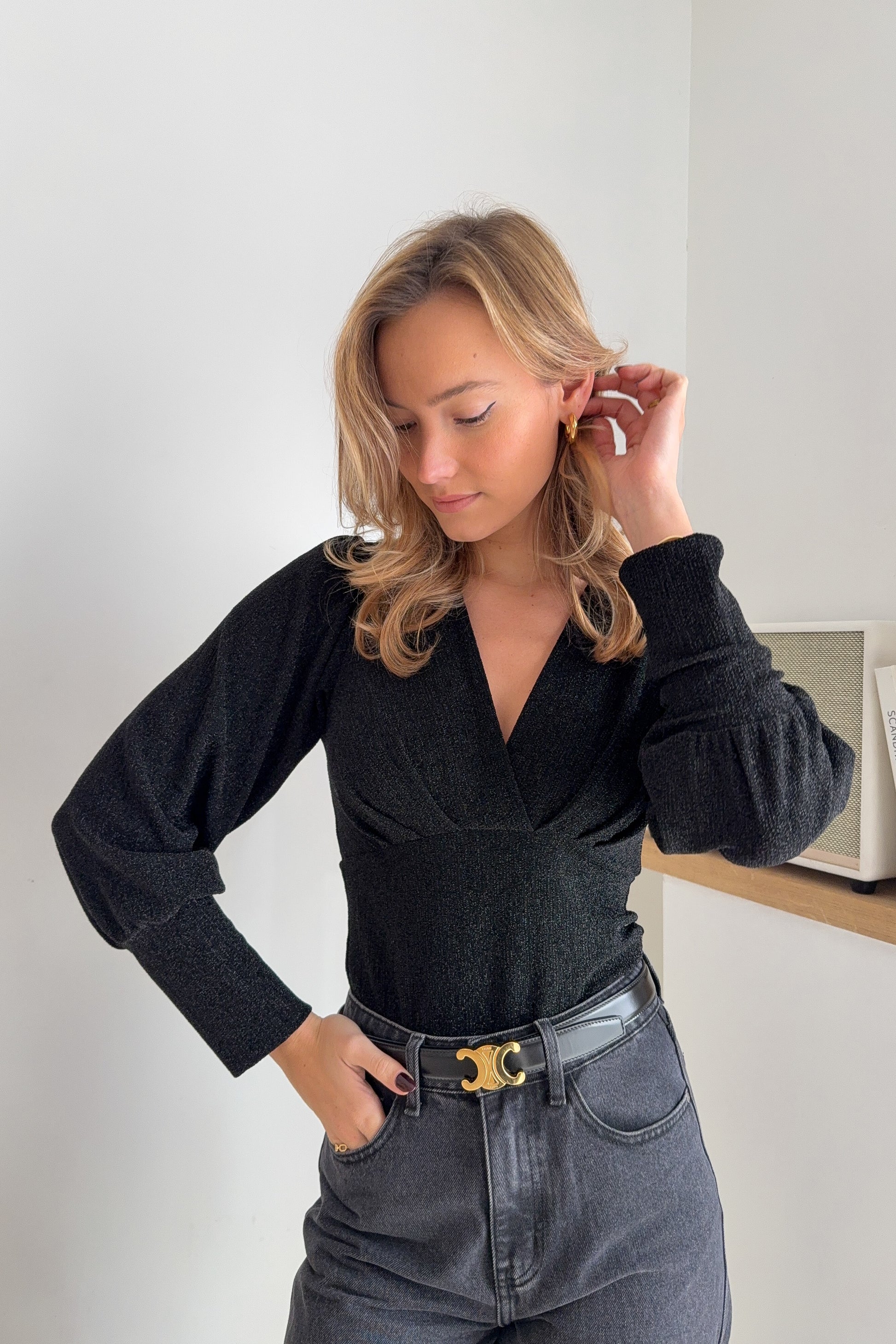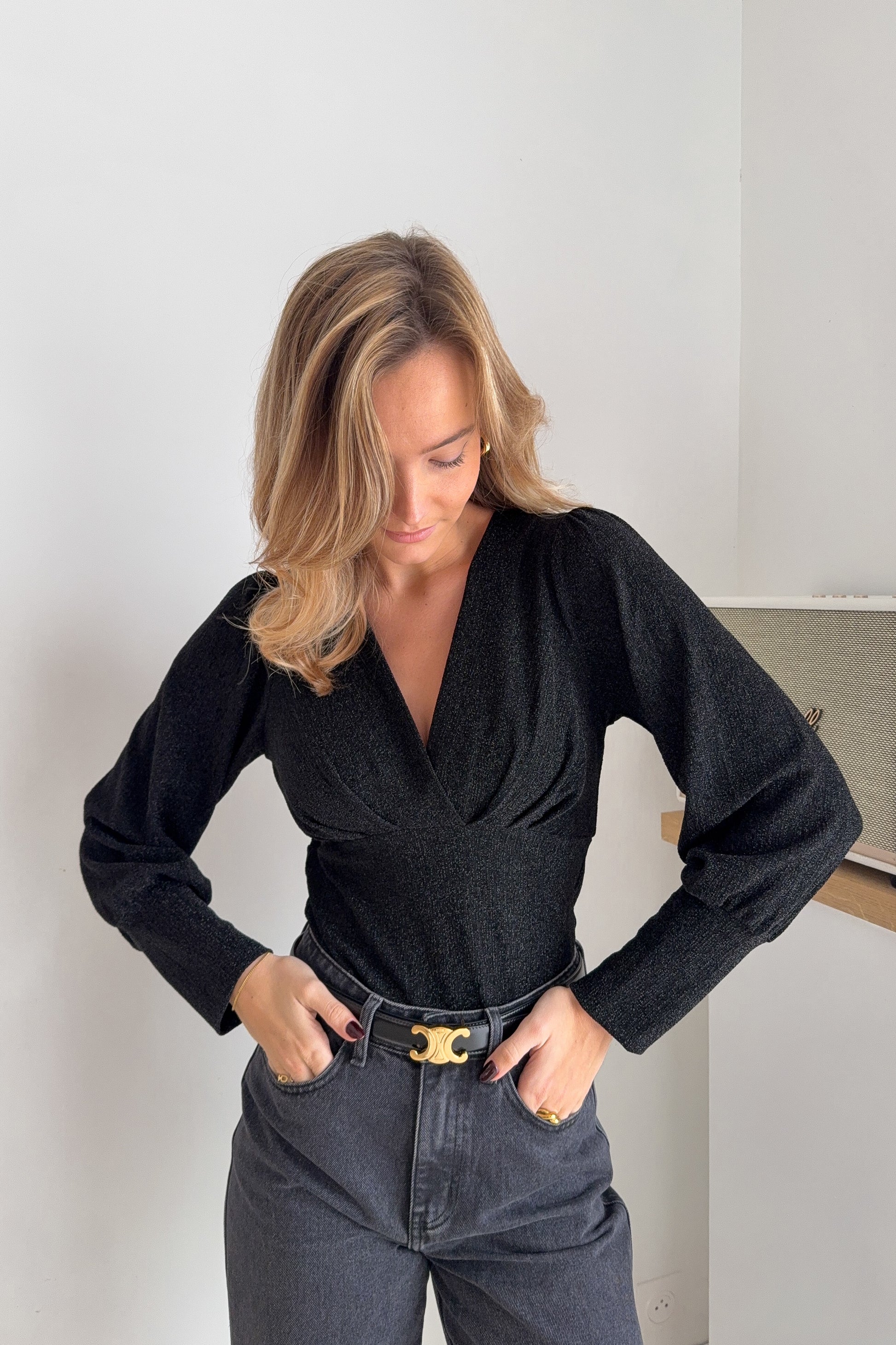 Body manches longues filaments noirs – col V