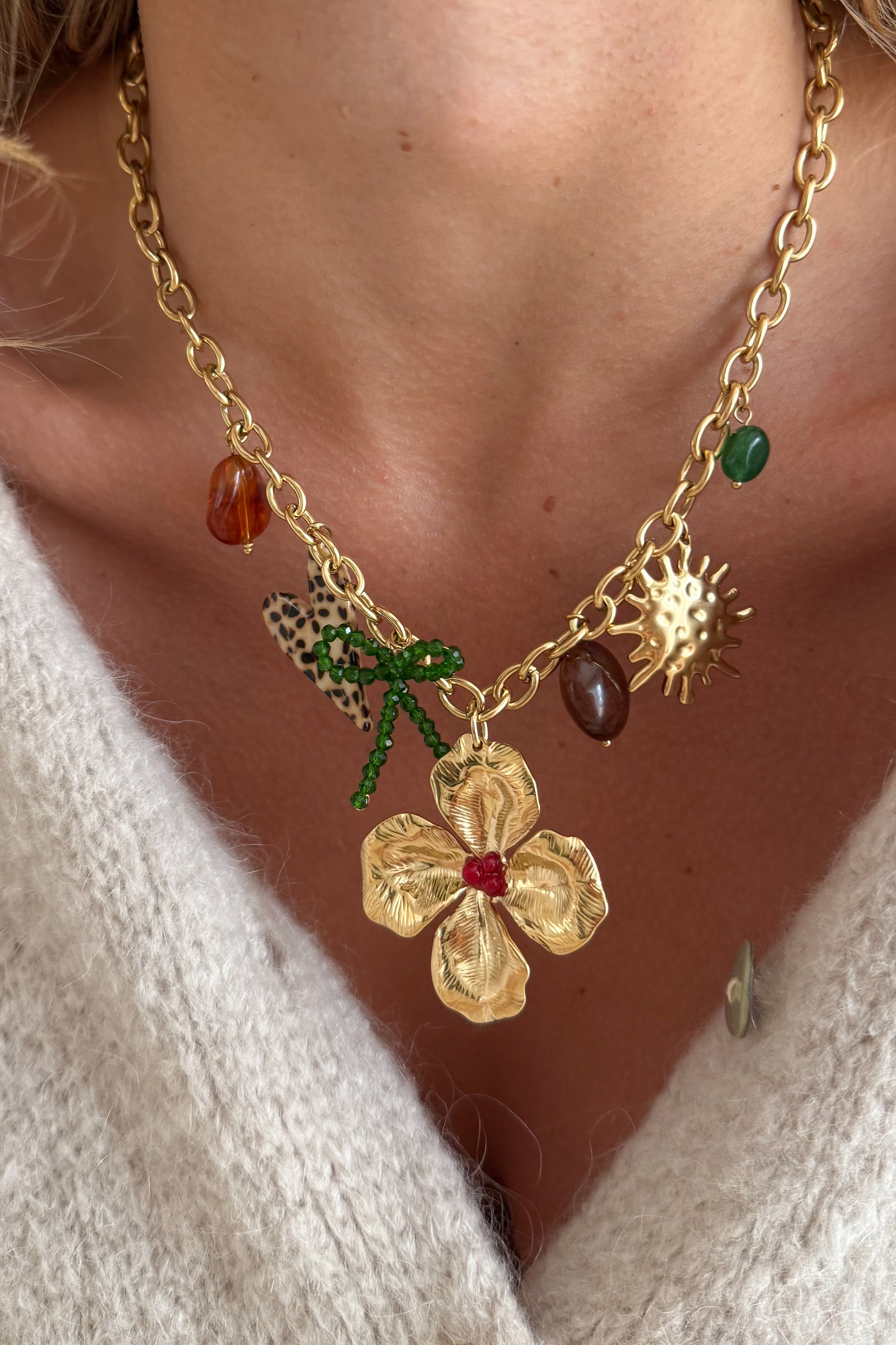 Ce collier doré en acier inoxydable se distingue par son charme délicat et raffiné. Orné de breloques et de perles qui apportent douceur et éclat, il illumine vos tenues avec subtilité. Sa chainette réglable et son fermoir mousqueton offrent un ajustement parfait, pour un bijou aussi élégant que pratique. Résistant et intemporel, il se porte aussi bien au quotidien que lors d’occasions spéciales.