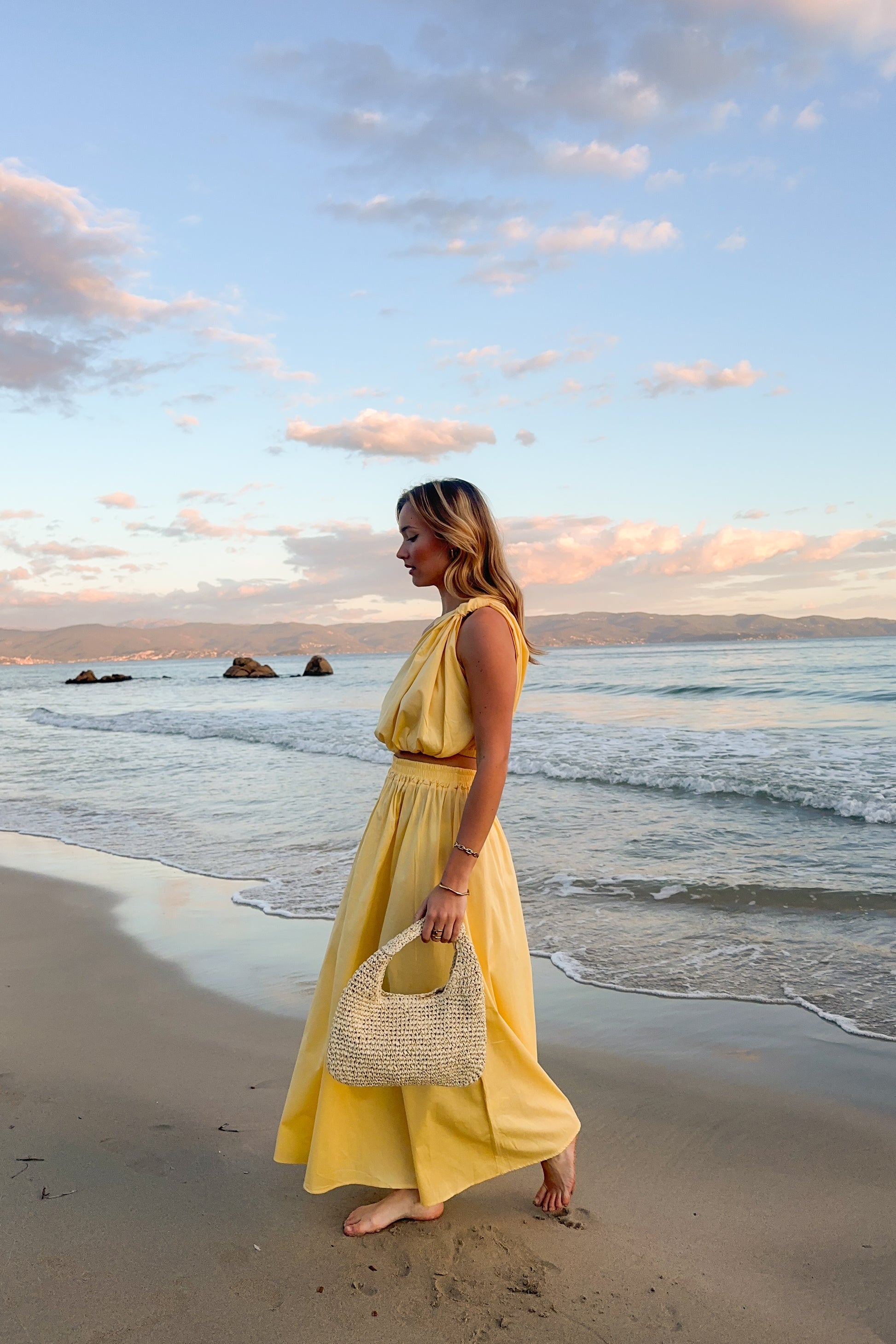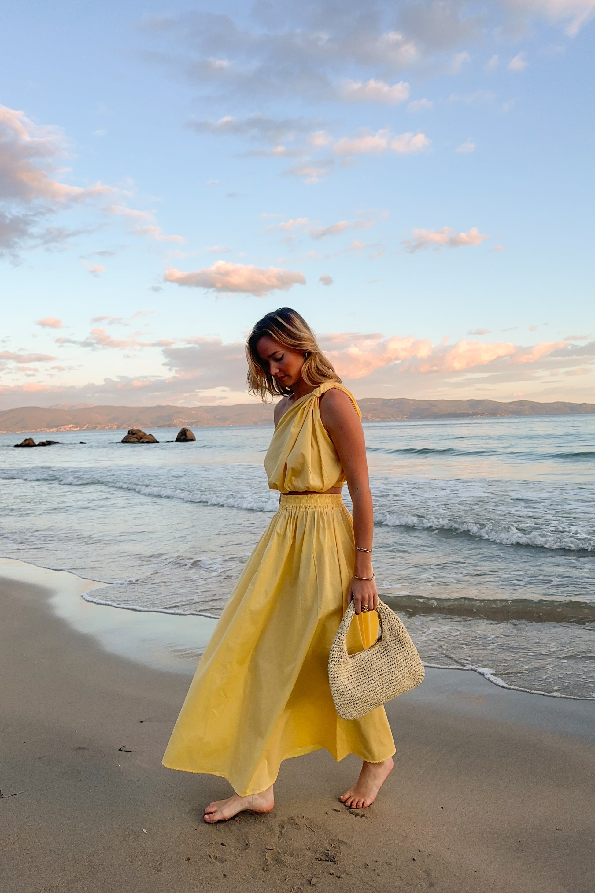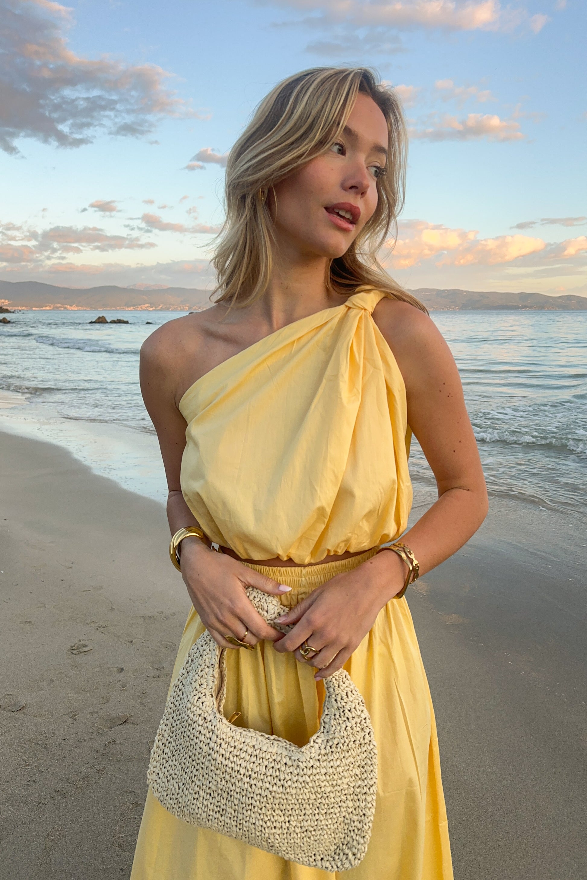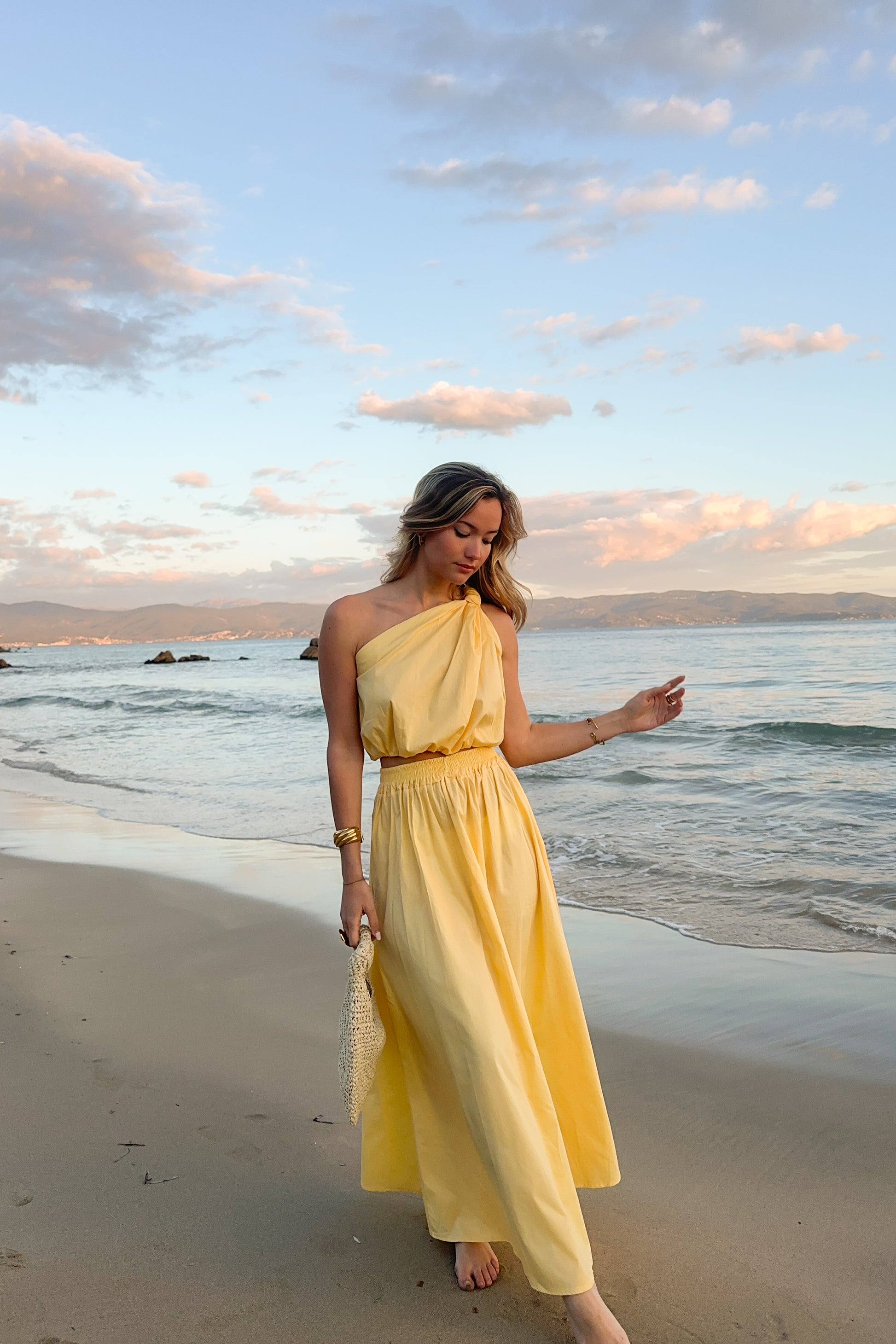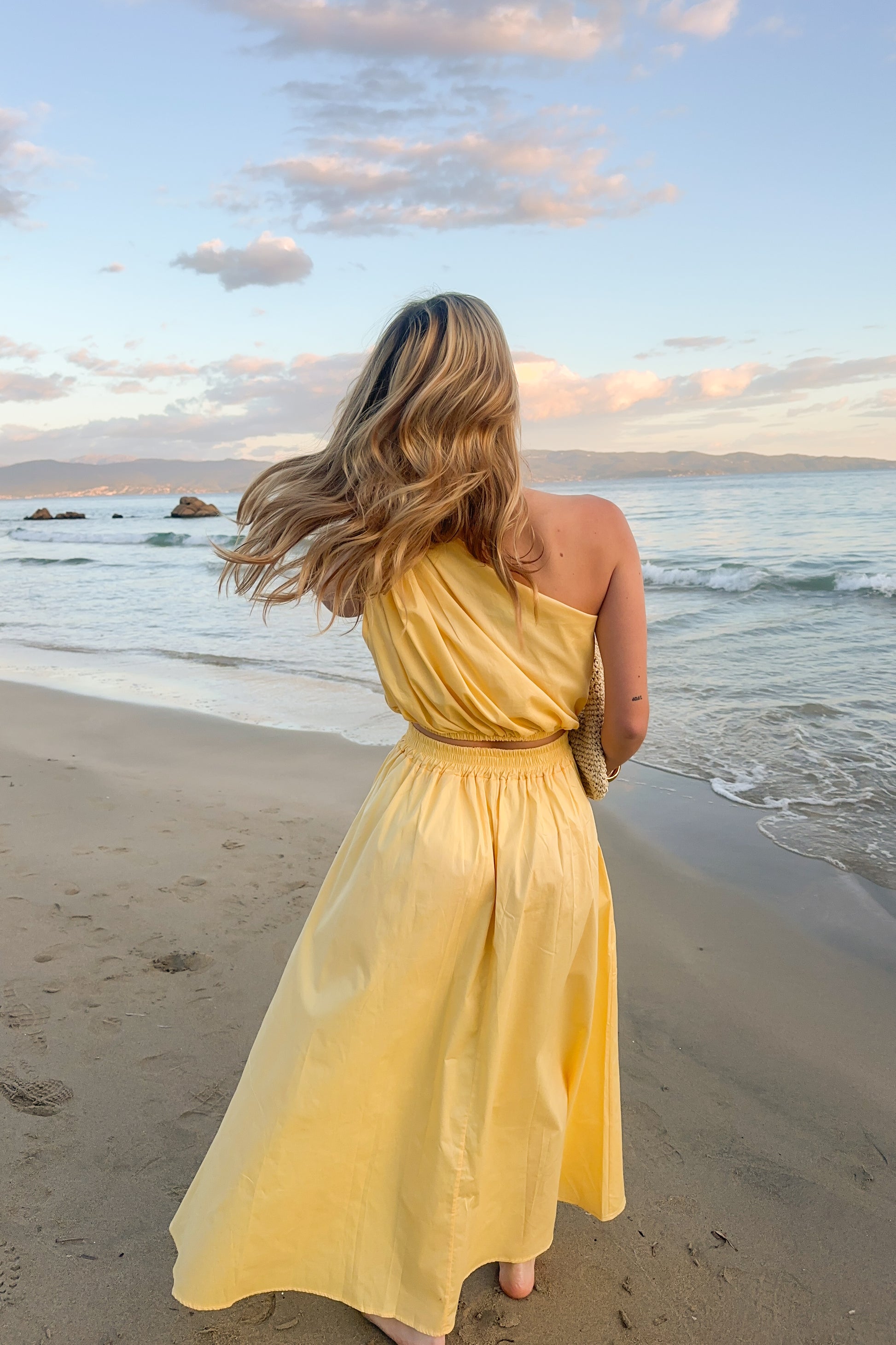 Adoptez un look élégant et moderne avec cet ensemble composé d'une jupe longue et d'un haut asymétrique à une épaule. Fabriqué en Italie, cet ensemble est confectionné en 100% coton, élastique offrant à la fois confort, souplesse et un ajustement parfait.