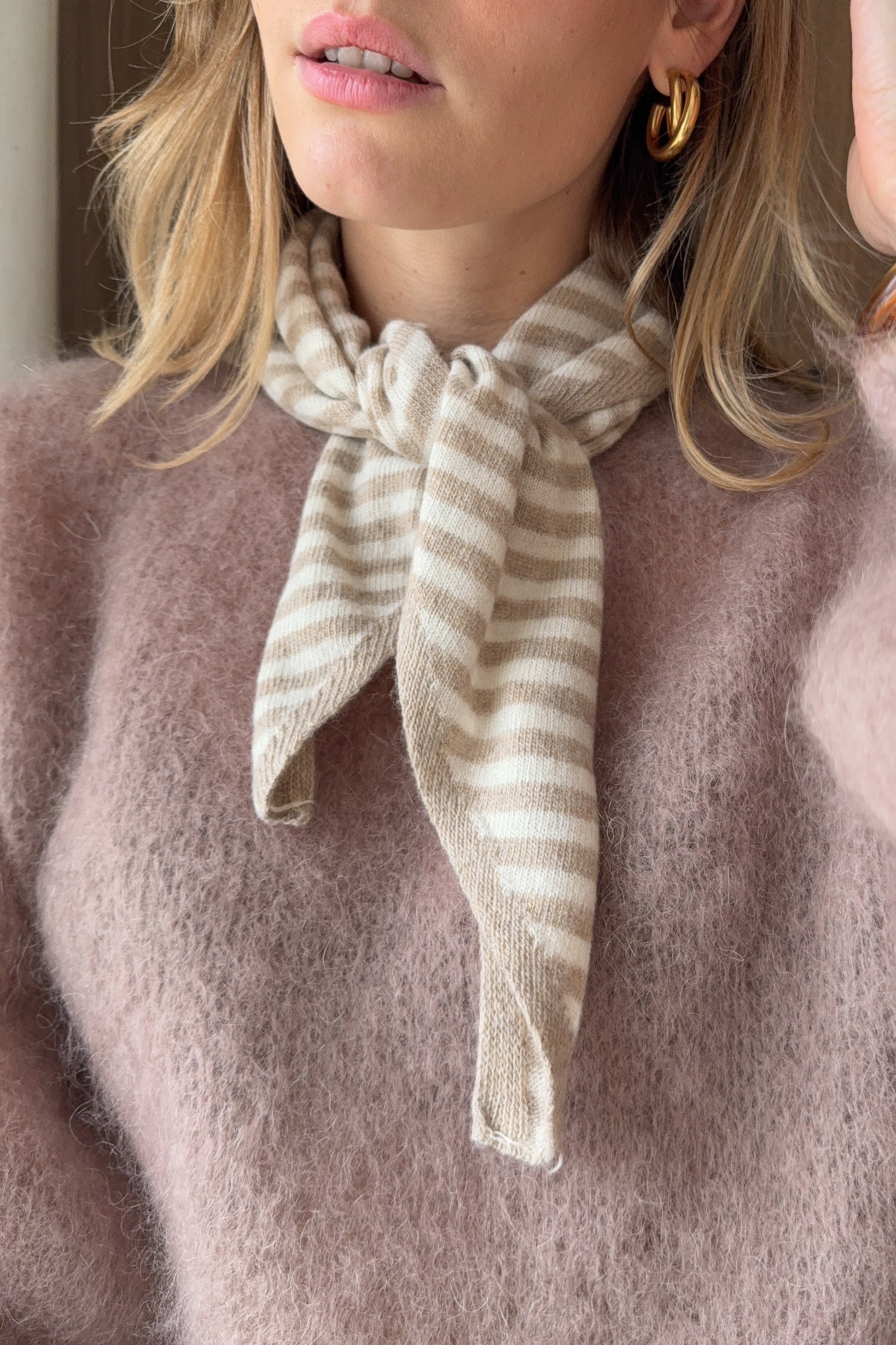 FOULARD TRIANGLE RAYE BEIGE ET ECRU (laine et cachemire)