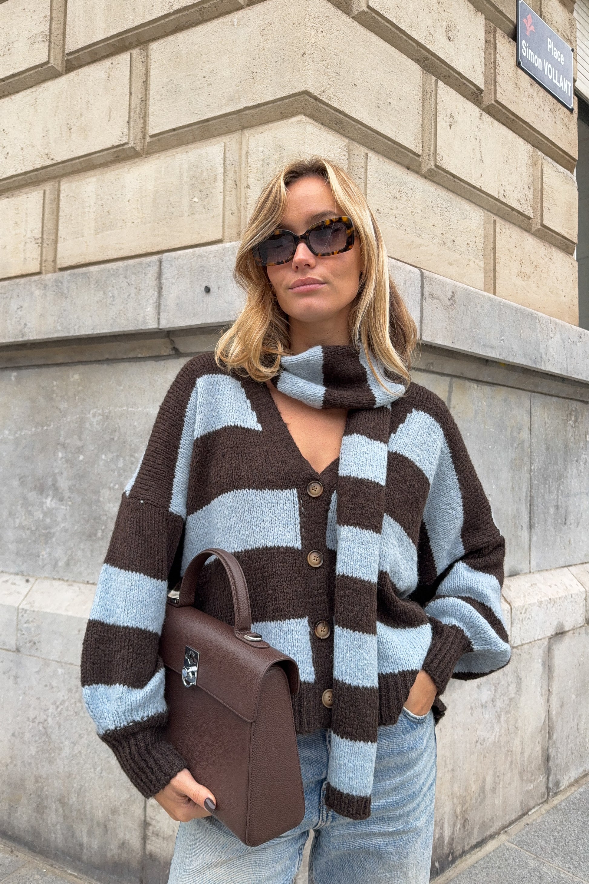 GILET GAETAN CIEL ET CHOCO (vendu avec son écharpe assortie)