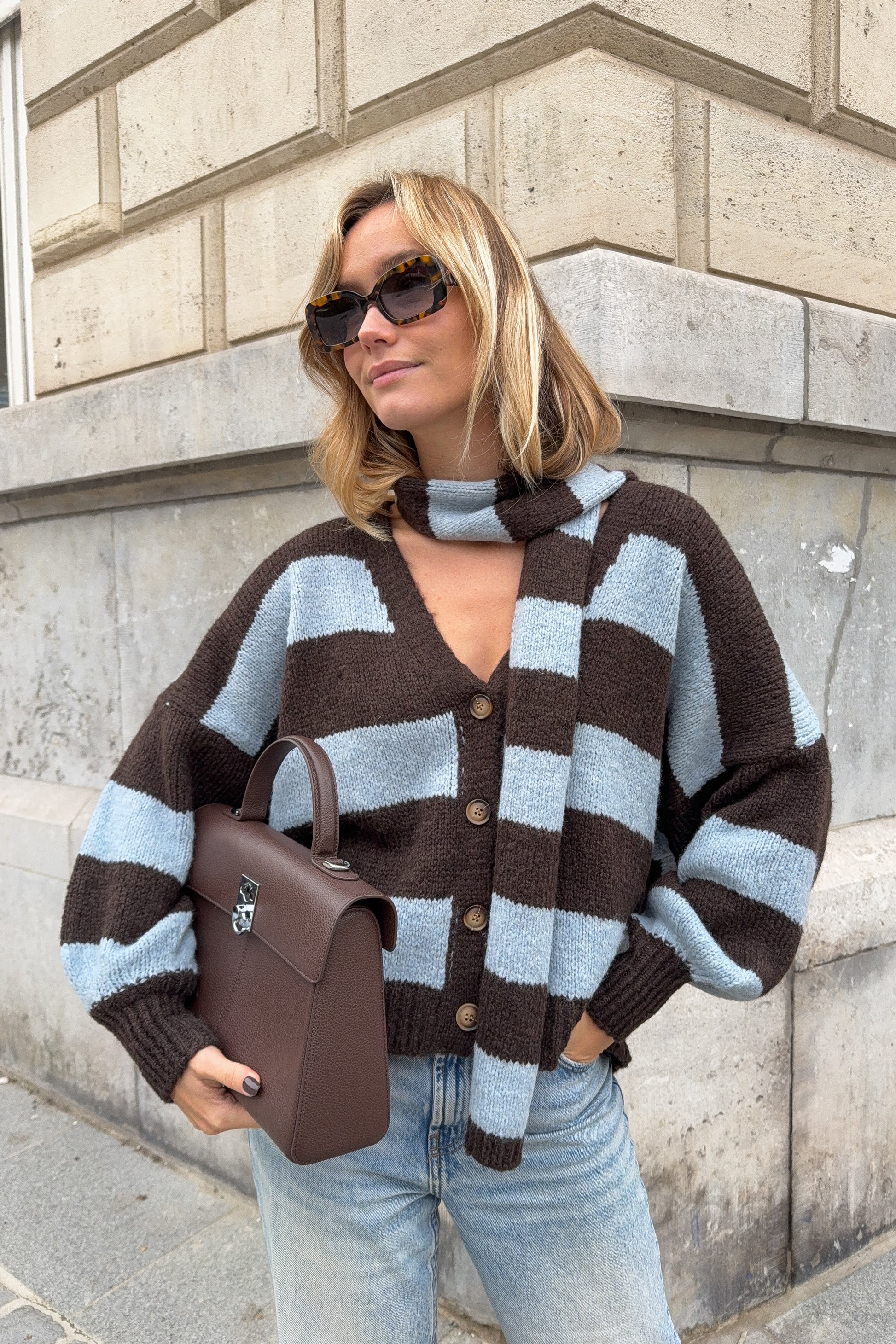 Gilet rayé bleu ciel et choco – fabriqué en Italie