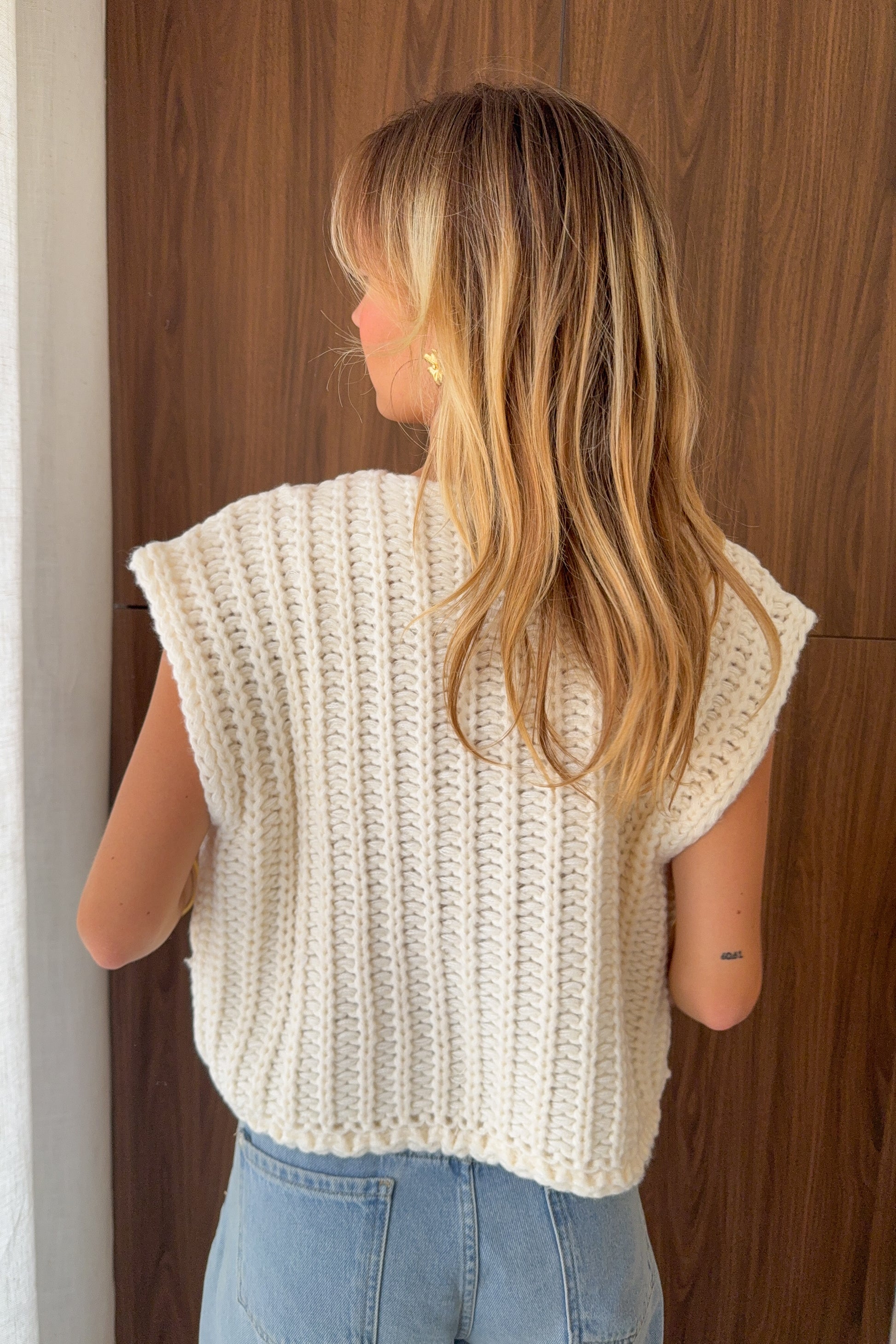 Gilet sans manches à grosses mailles – Écru