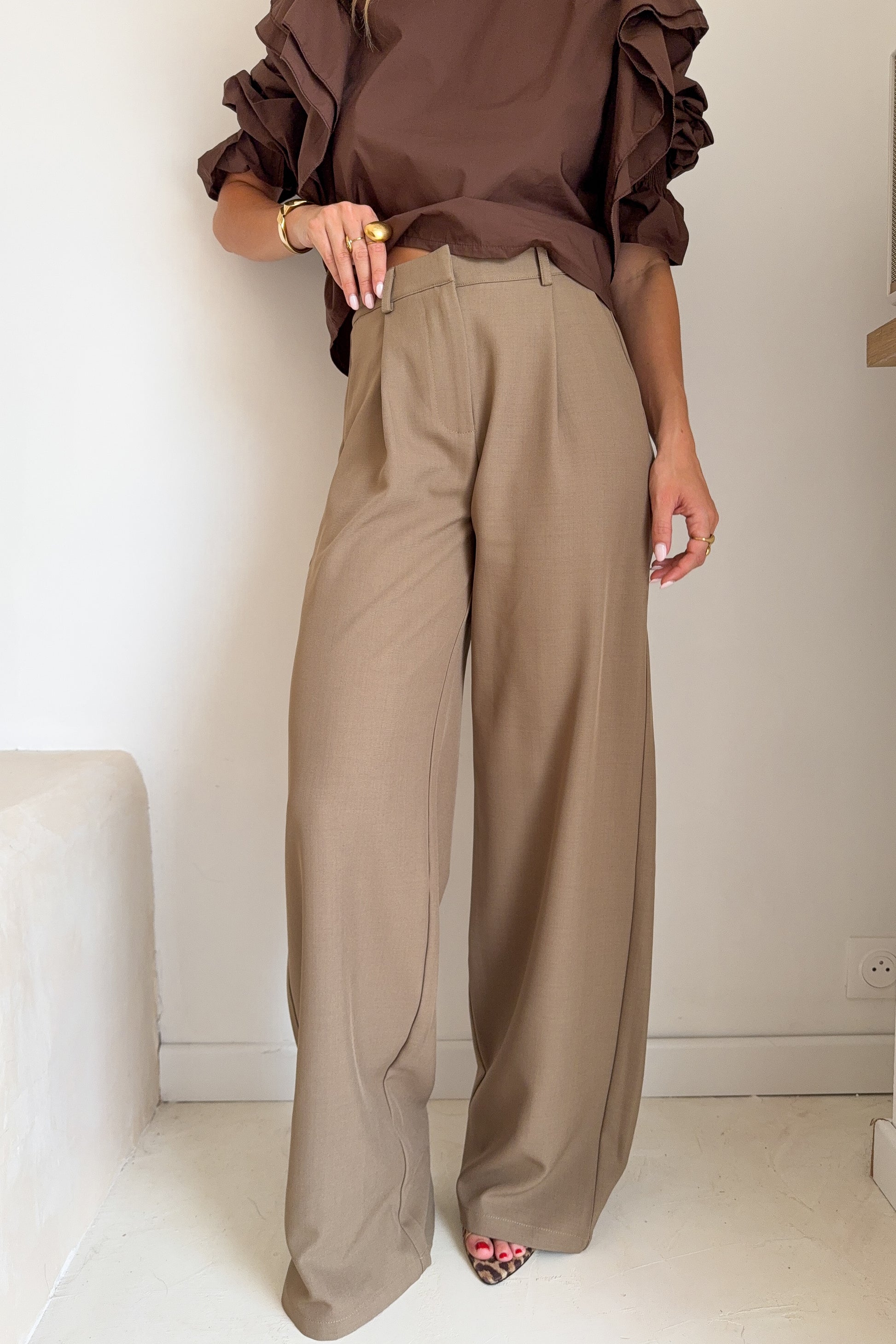 Un pantalon élégant et structuré, parfait pour un look raffiné au quotidien ou pour des occasions spéciales. Sa coupe à pinces met en valeur la silhouette tout en garantissant confort et liberté de mouvement.