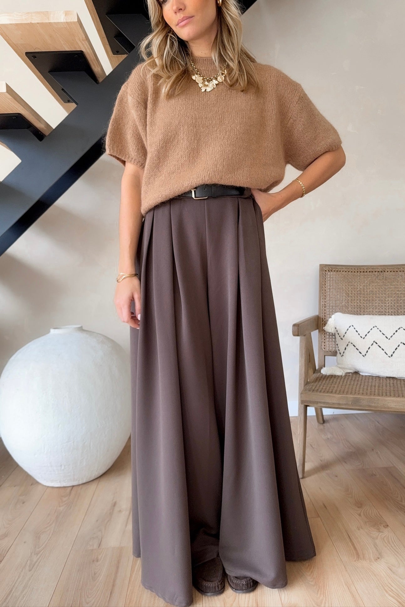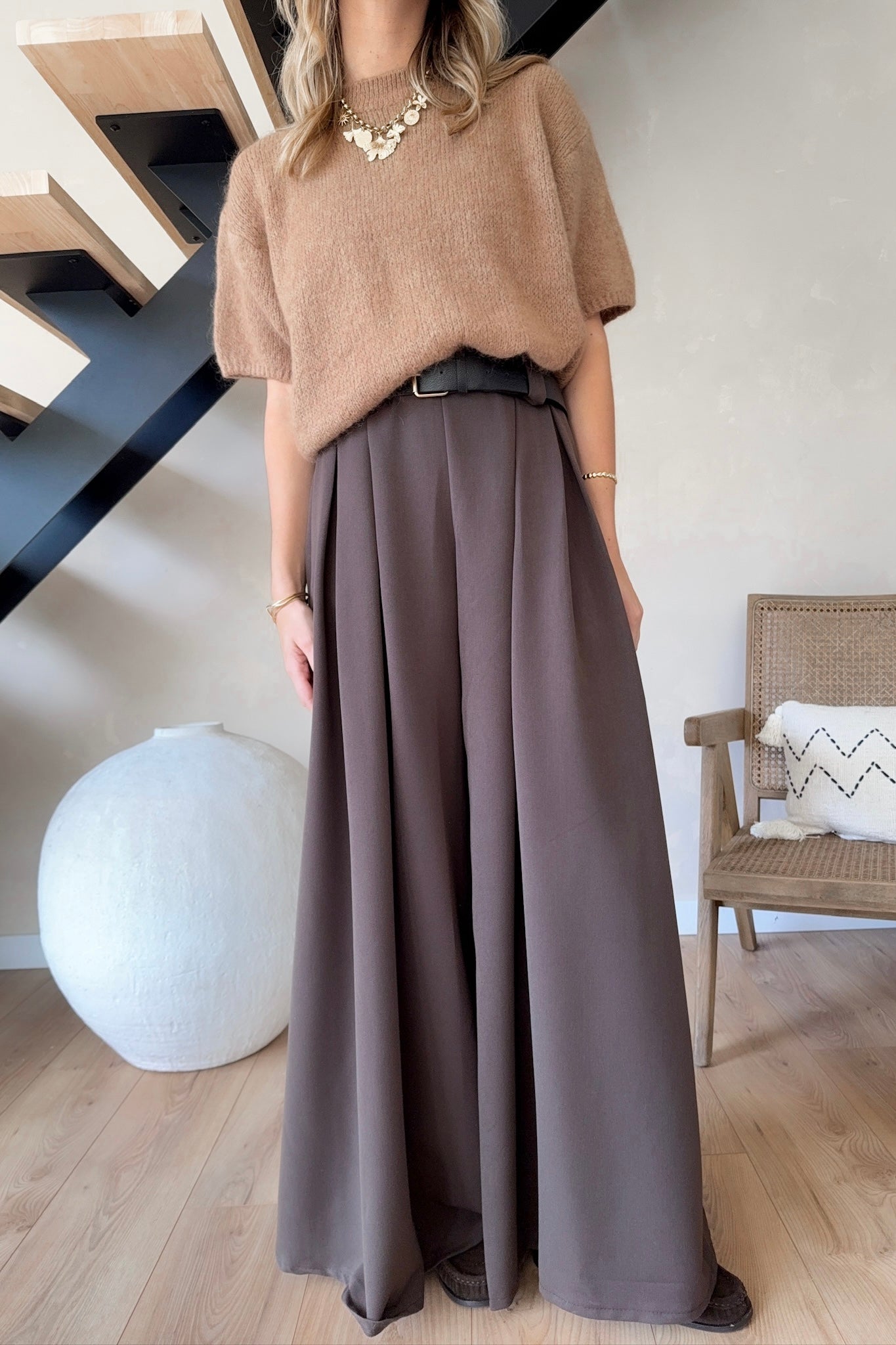 Pantalon choco à ceinture simili noire – sublimes volumes