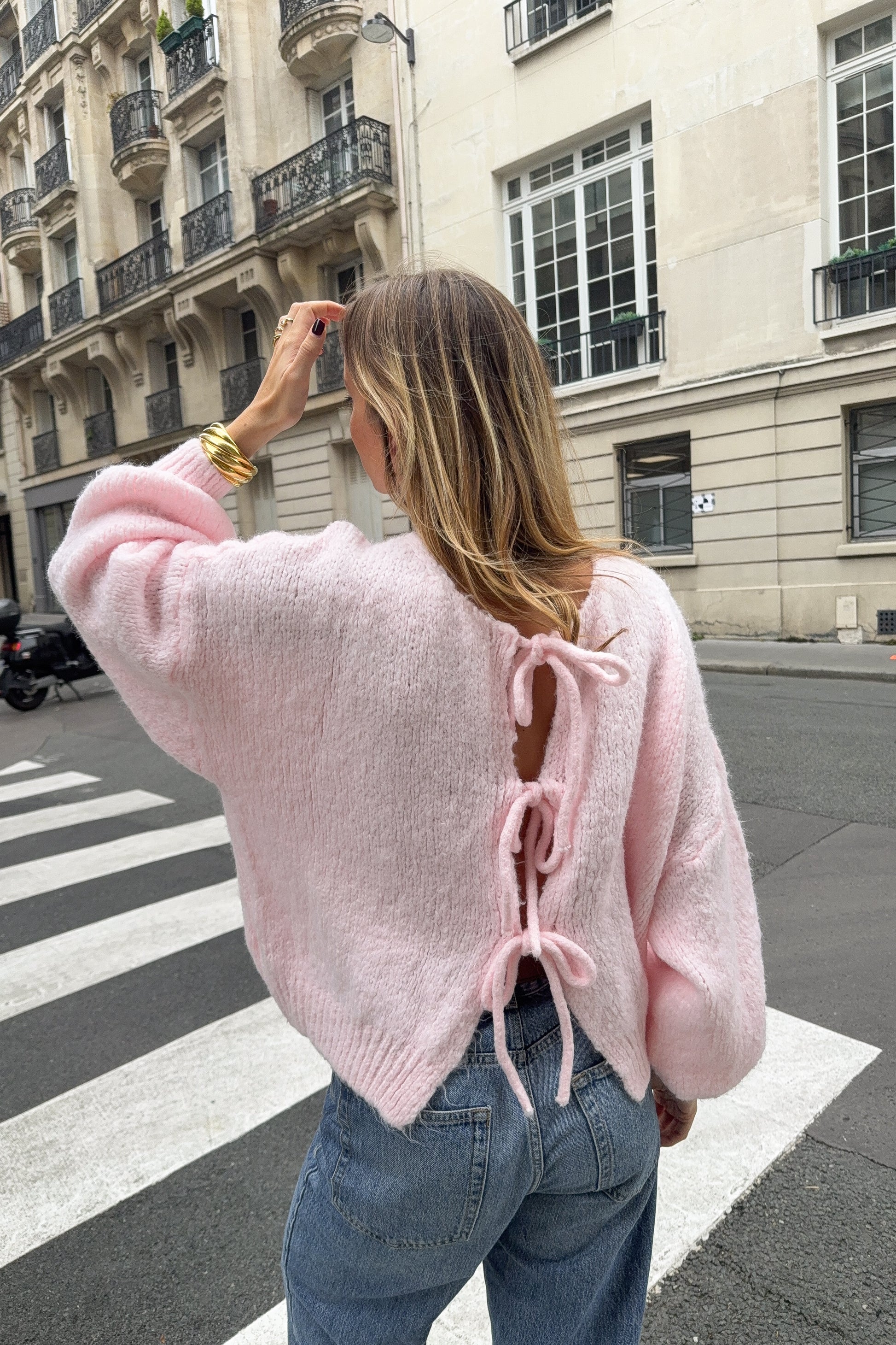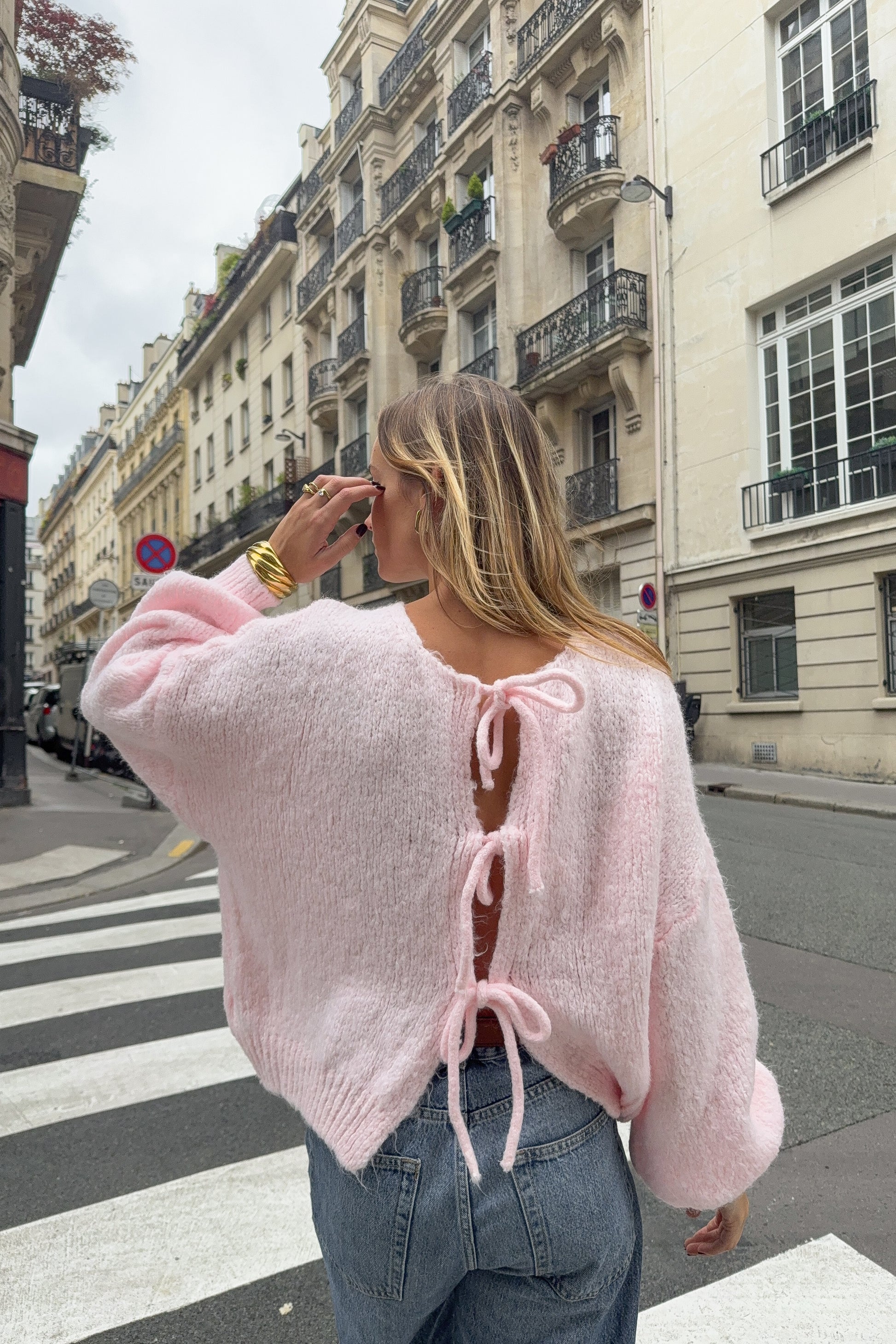 Un pull féminin et original que vous pouvez porter dans les deux sens selon vos envies. Ses trois jolis nœuds apportent une touche élégante et délicate, idéale pour une silhouette raffinée et moderne.