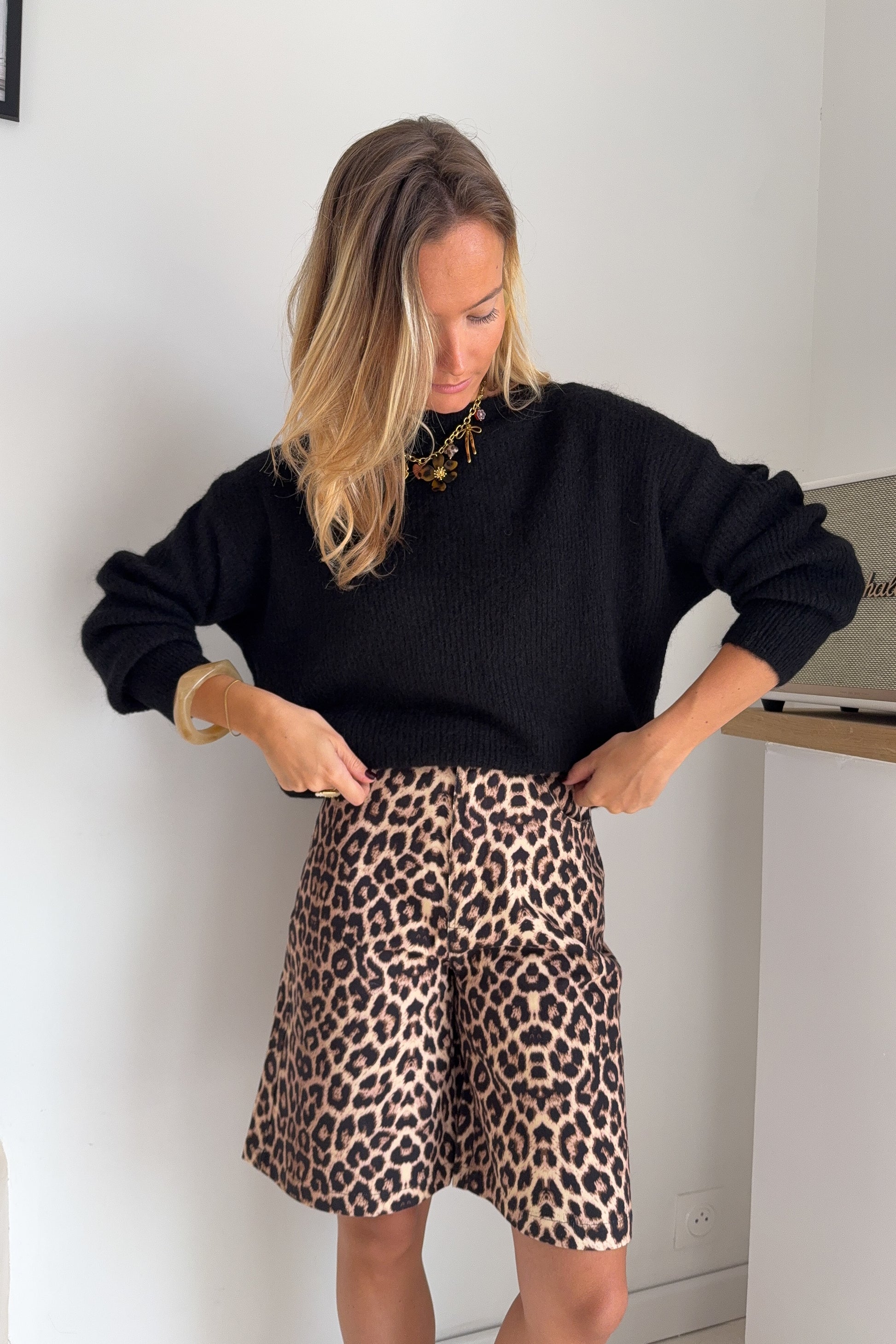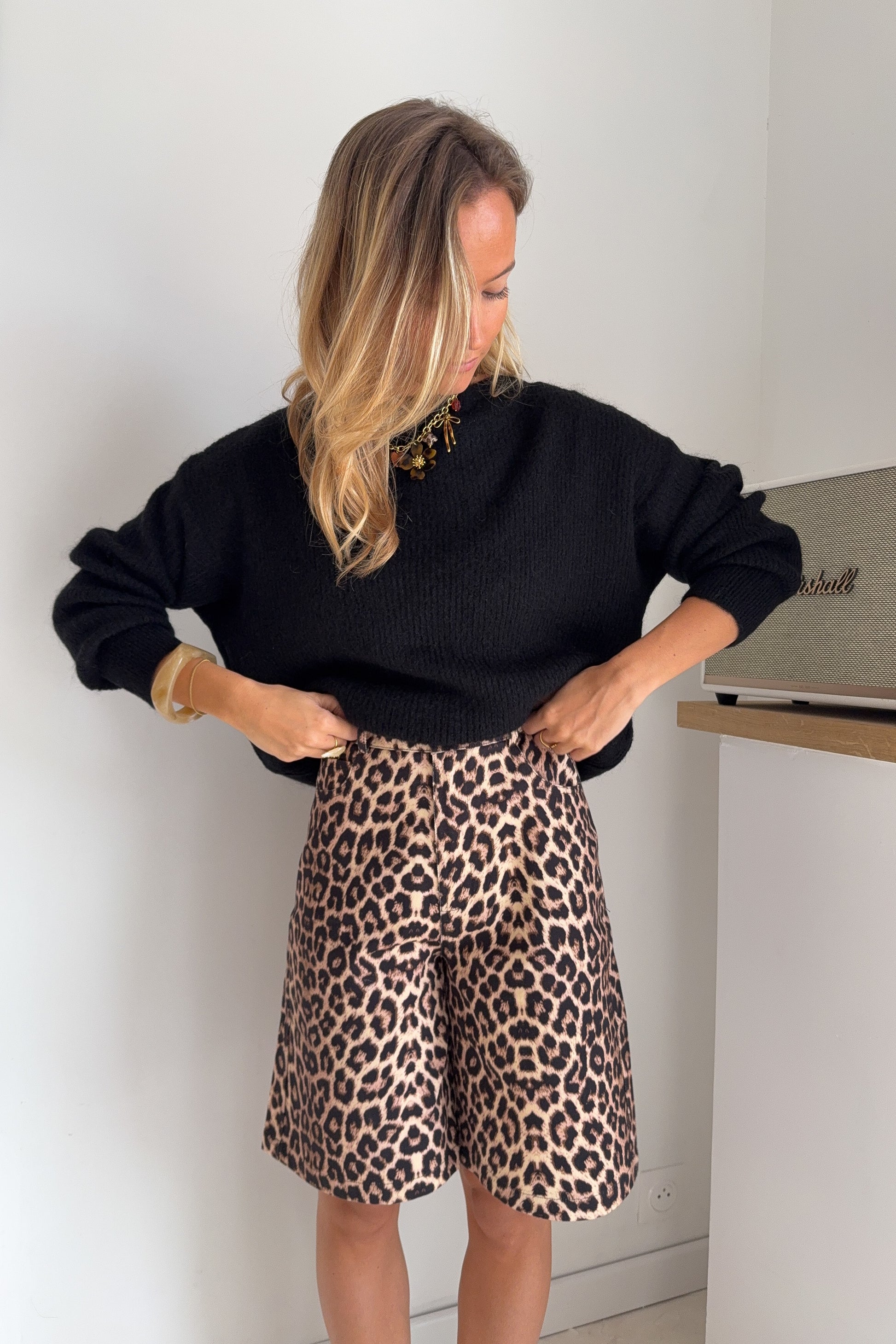 Audacieux et tendance, ce short bermuda à motif léopard apporte une touche de caractère à vos tenues d’été. Sa coupe confortable et son imprimé sauvage en font une pièce facile à associer avec un top uni pour un look stylé et affirmé. Confectionné en 100% coton.