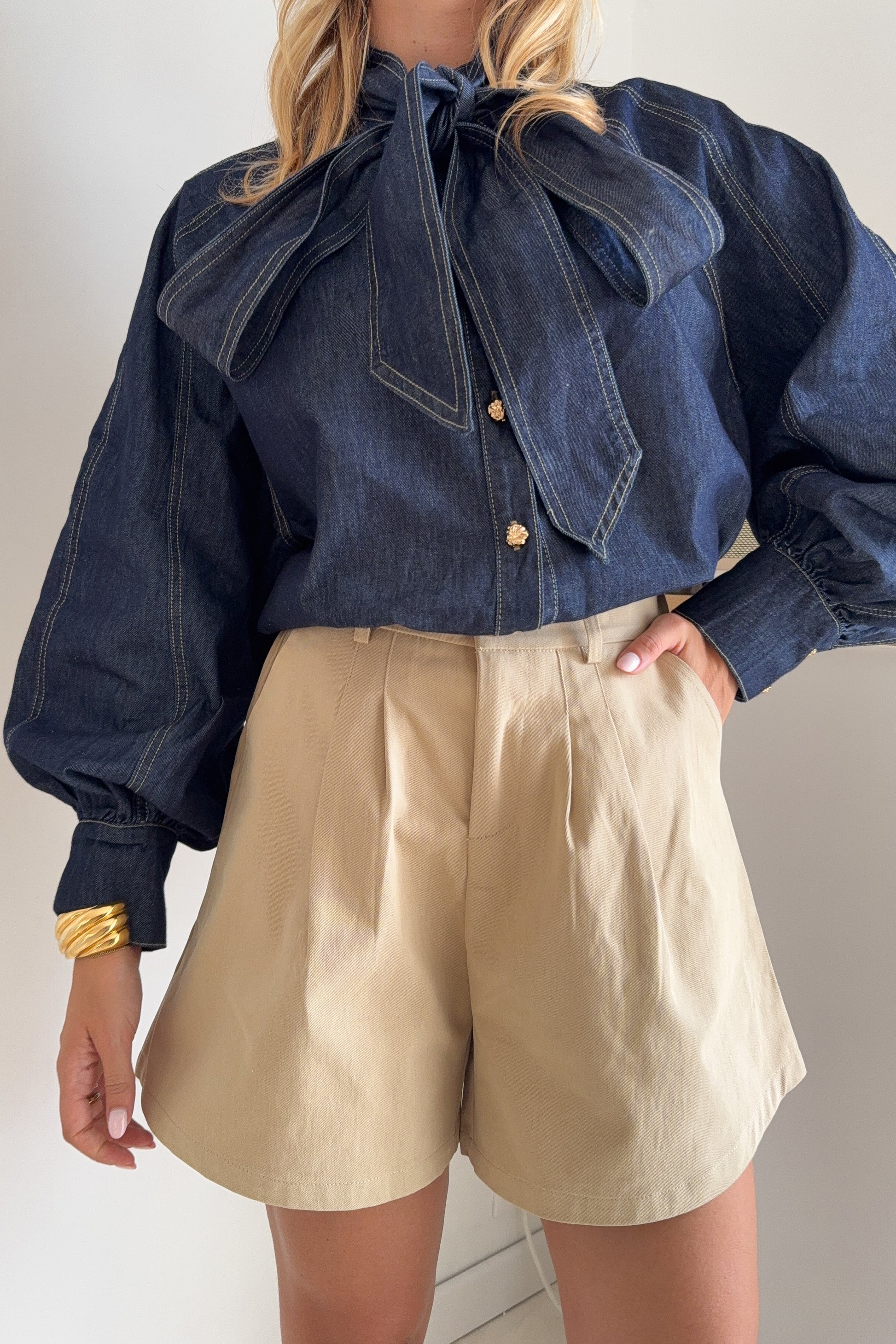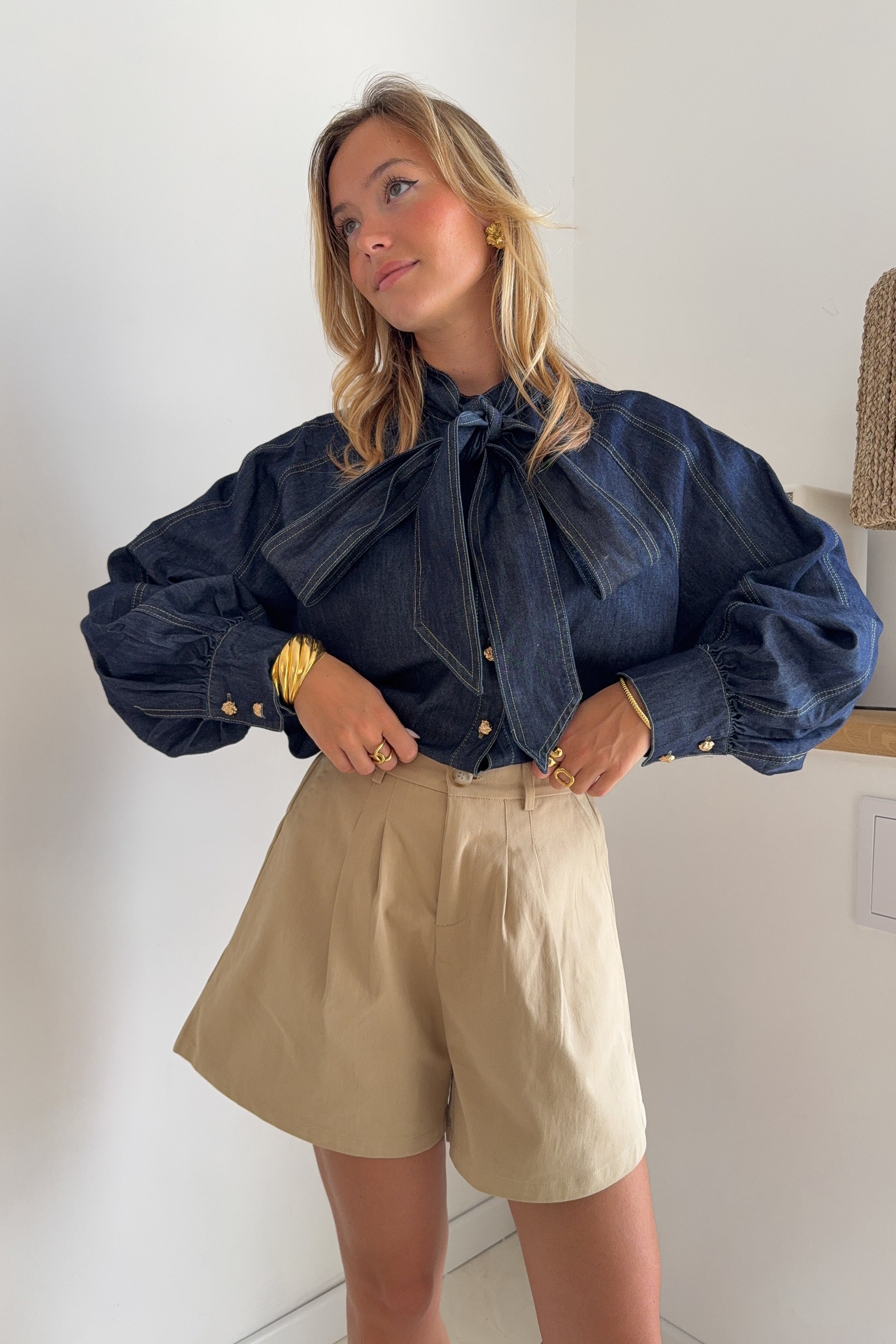 Ce short beige est une pièce facile à porter, alliant confort et allure. Sa belle tenue met en valeur la silhouette, tandis que sa taille élastiquée au dos assure un ajustement agréable. Avec ses deux poches côtés pratiques, il se porte aussi bien en ville qu’en vacances pour un look décontracté et raffiné.