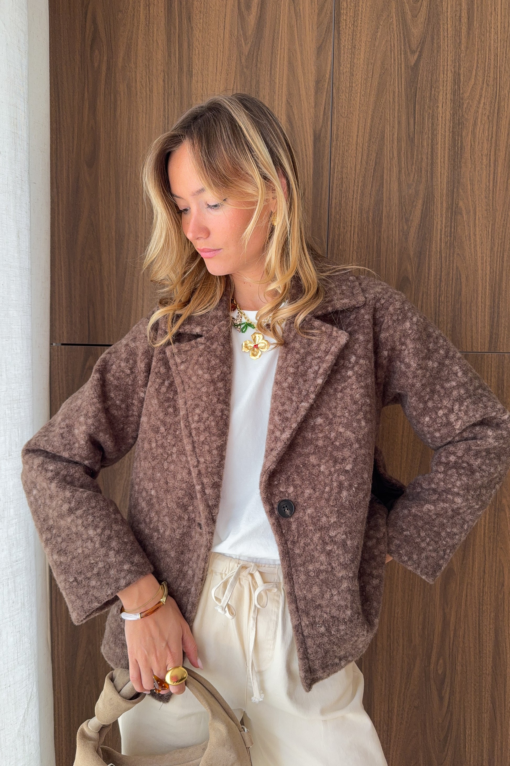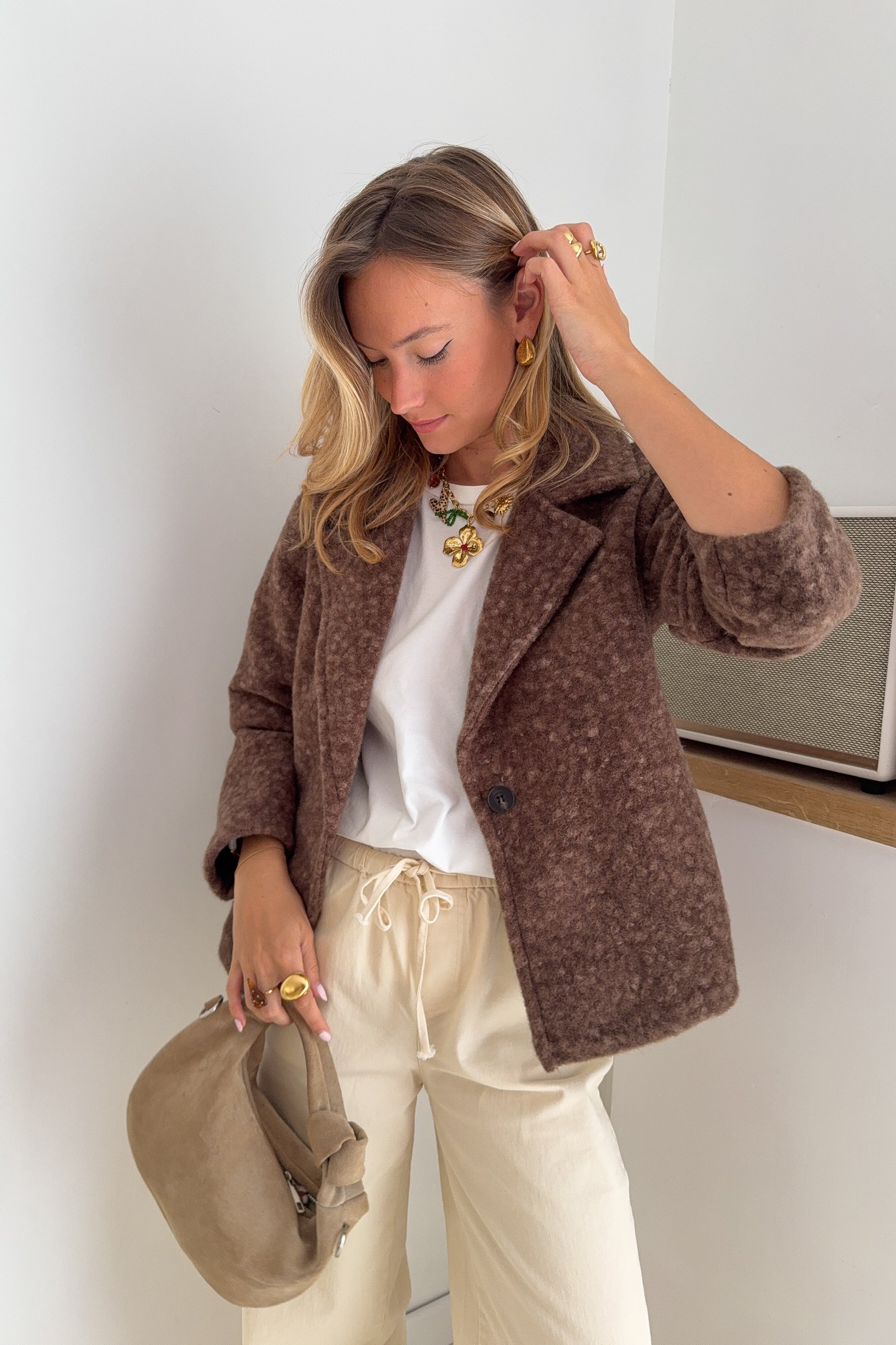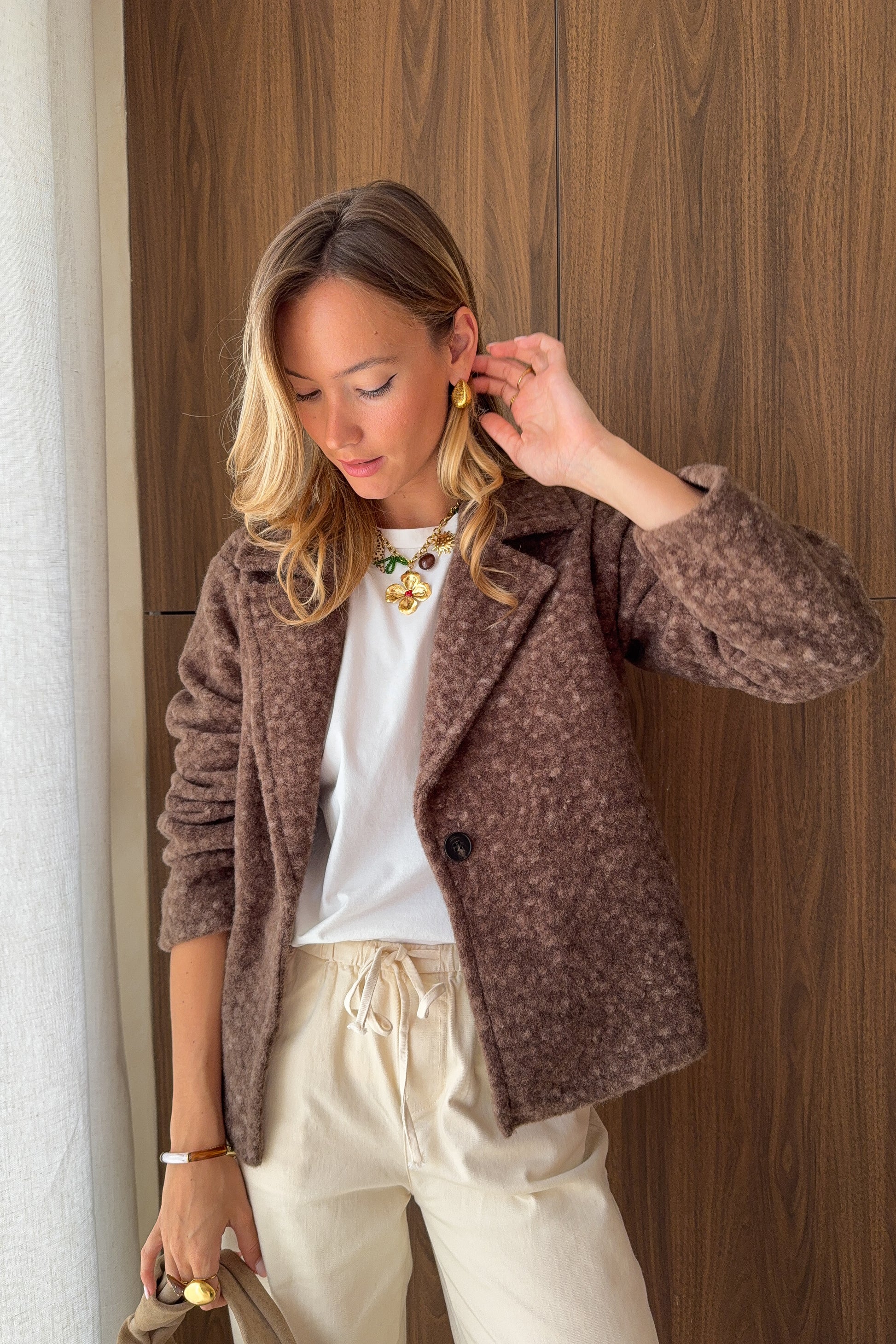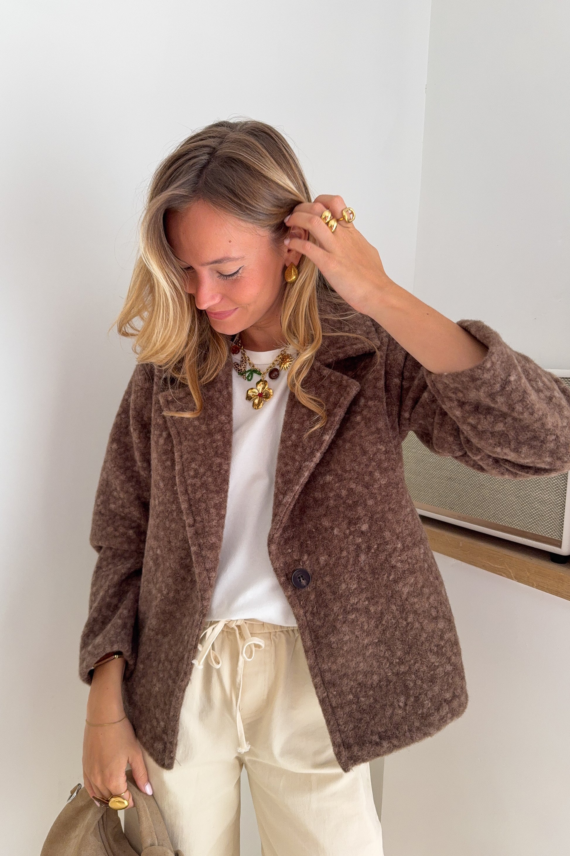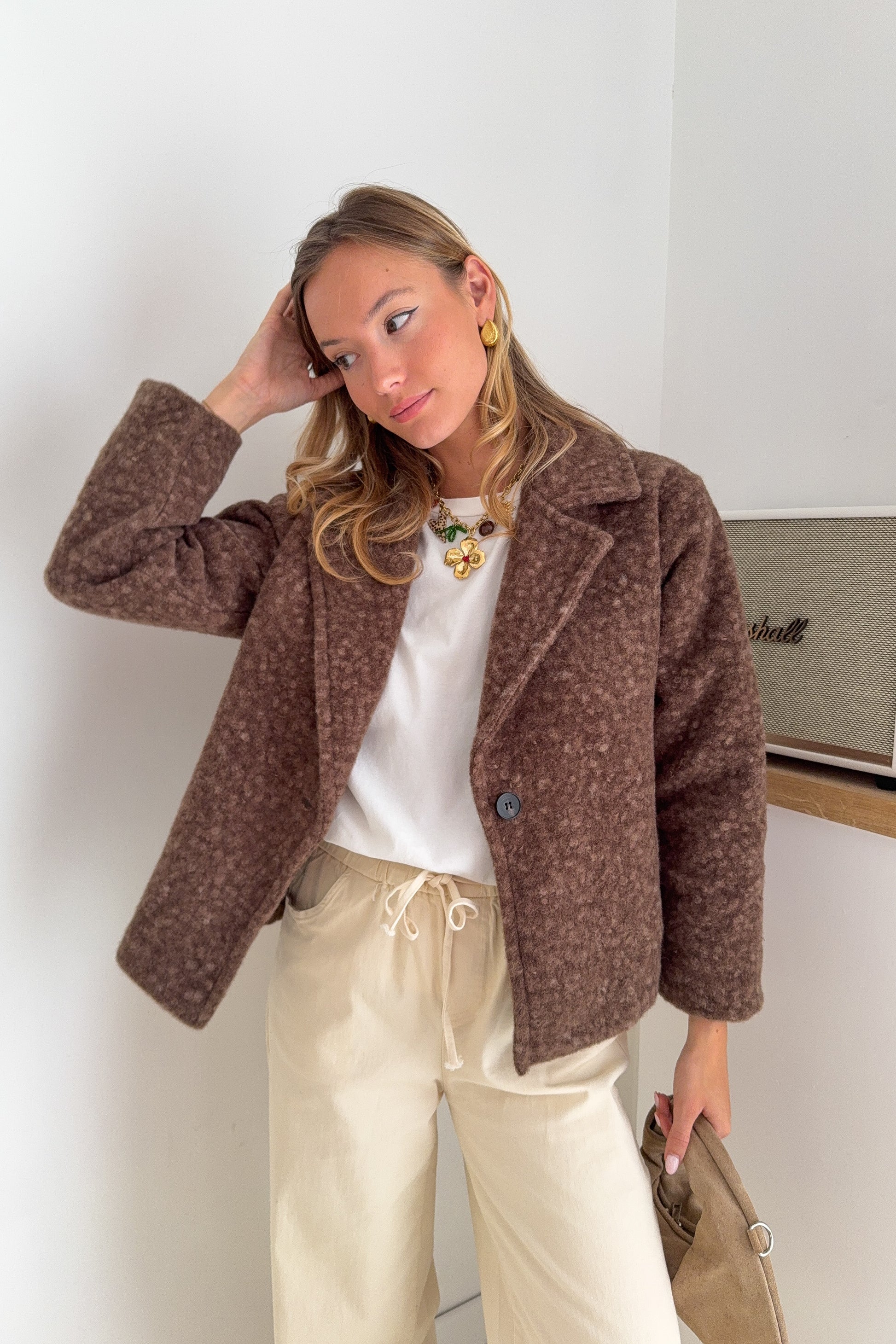 Veste douce et confortable, doublée pour plus de chaleur, dans de jolis tons marron. Une pièce polyvalente, facile à porter au quotidien.