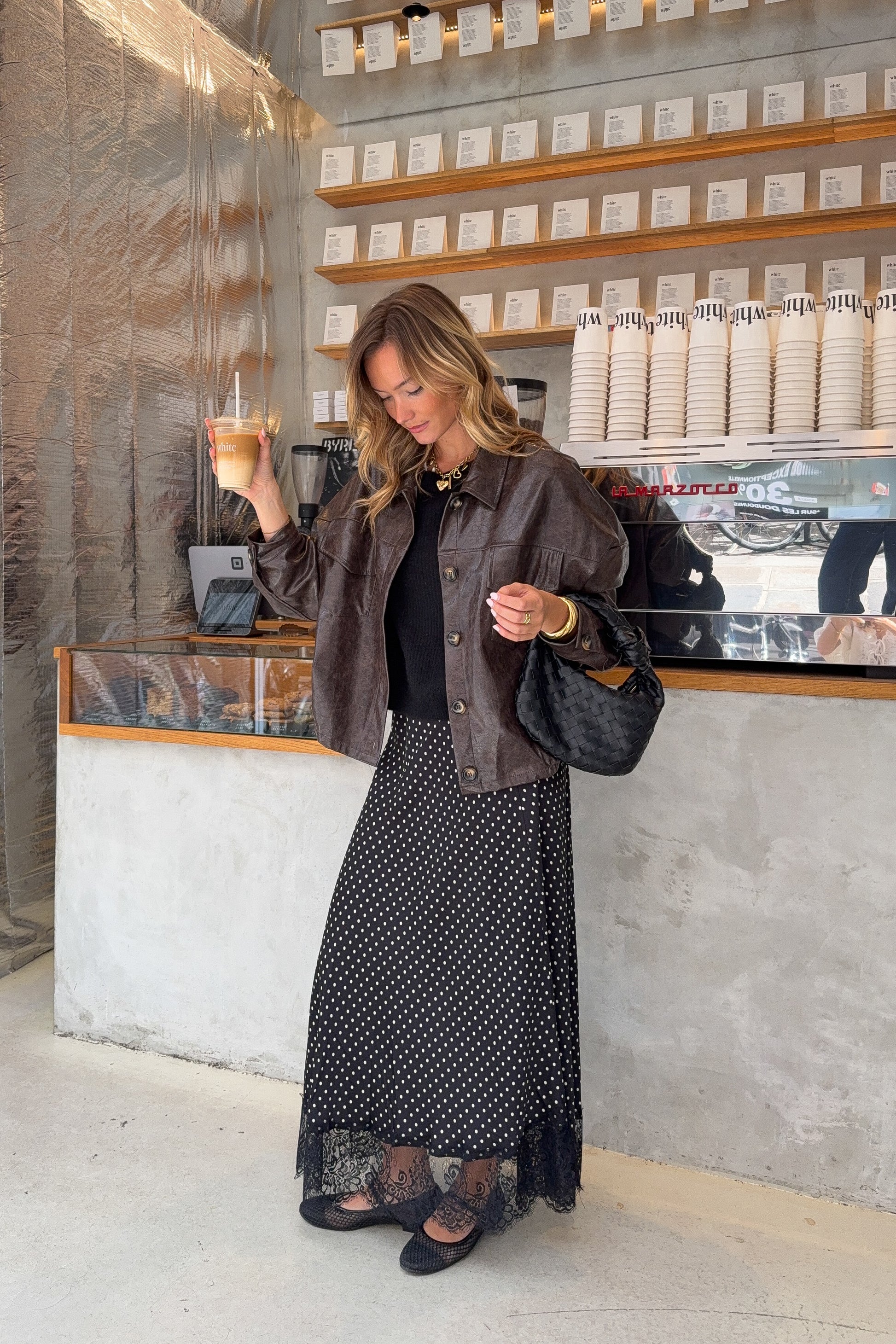 Veste simili cuir marron foncé femme effet vieilli – fabriquée en Italie