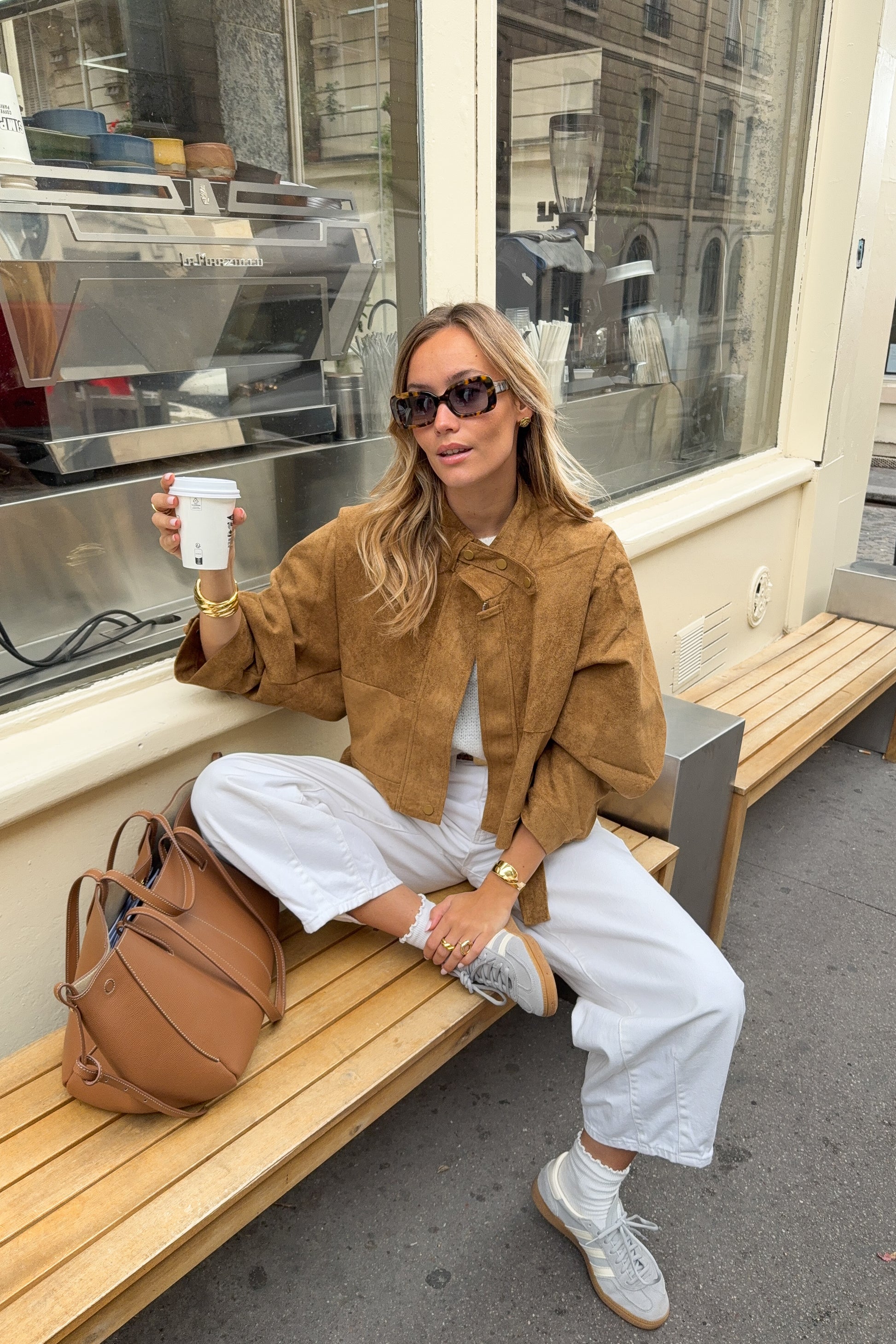 Cette veste en suédine marron est la pièce idéale pour ajouter une touche chaleureuse et stylée à votre look. Avec sa coupe légèrement oversized et son tissu doux, elle s’adapte facilement à toutes vos tenues, du matin au soir. Les détails minimalistes, tels que les boutons pression au col, offrent un effet à la fois moderne et élégant.