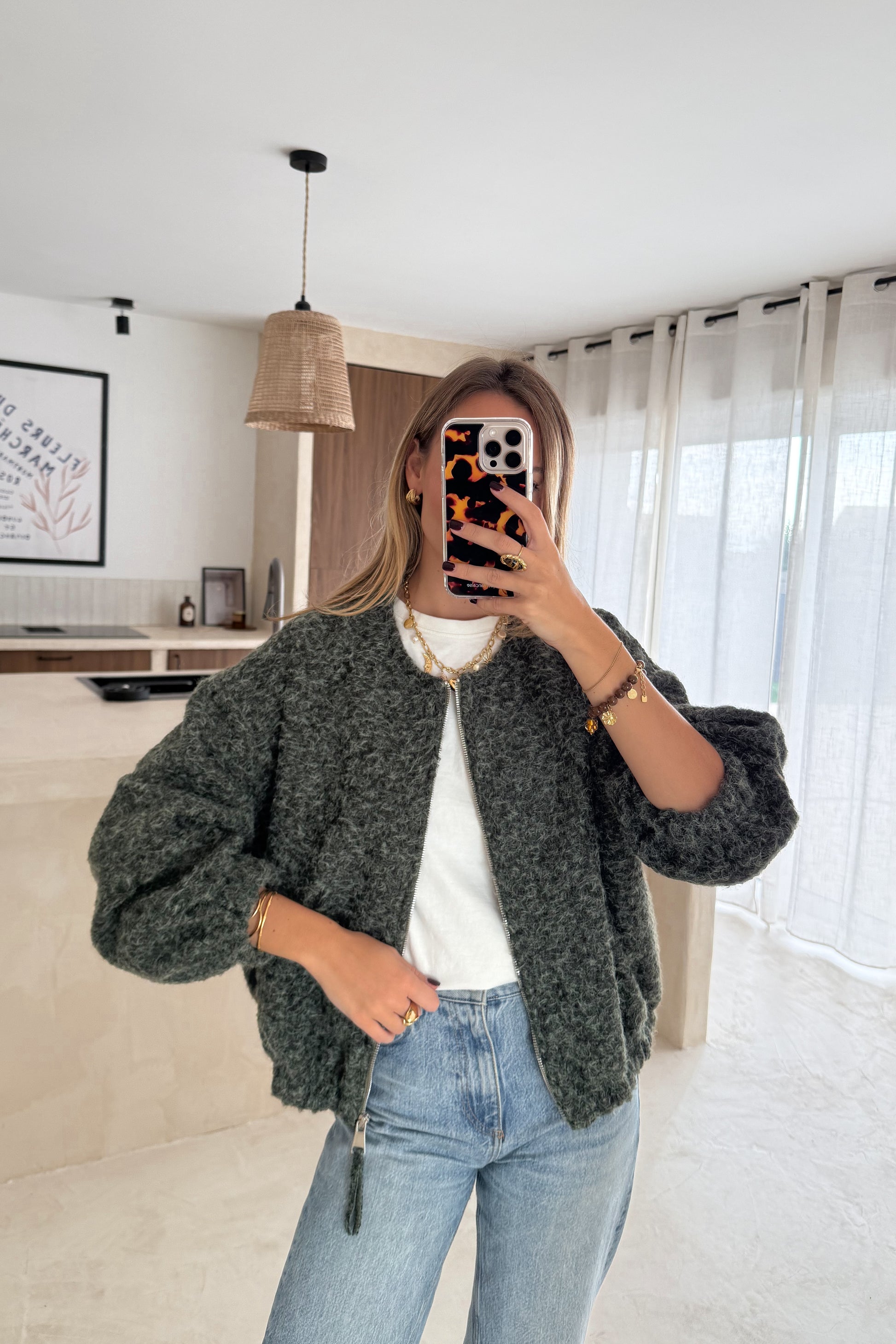 Veste élégante et confortable, confectionnée dans une matière ultra douce. Ses volumes sublimes en font une pièce idéale pour un look moderne et cocooning. Fermeture par zip pratique à l’avant.