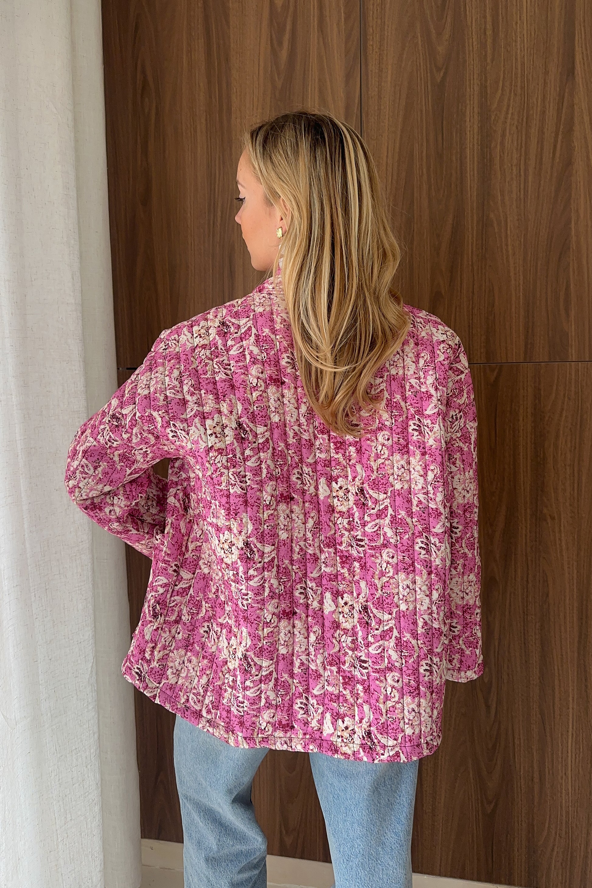 Veste matelassée fleurie dans les tons roses et écrus – Fabriquée en Italie